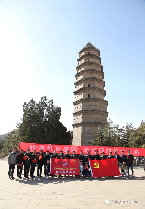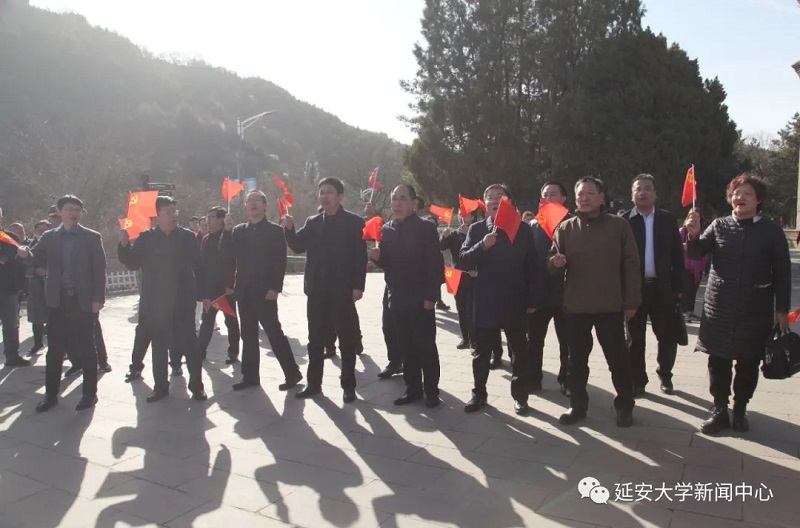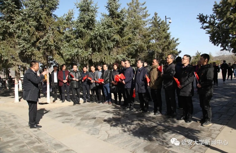 会议期间(3月20日-21日),延安大学还组织与会人员到梁家河知情旧居、杨家岭革命旧址、宝塔山开展了党史学习现场教学活动,聆听马克思主义学院教授王东维、谭虎娃所作主题党课,与延大师生代表合唱《没有共产党就没有新中国》《唱支山歌给党听》,并参观了延安大学校园、校史陈列馆。参会人员在追寻红军足迹,参观革命遗址,缅怀革命先烈的实践活动中,接受红色文化洗礼,受到深刻的党性教育。