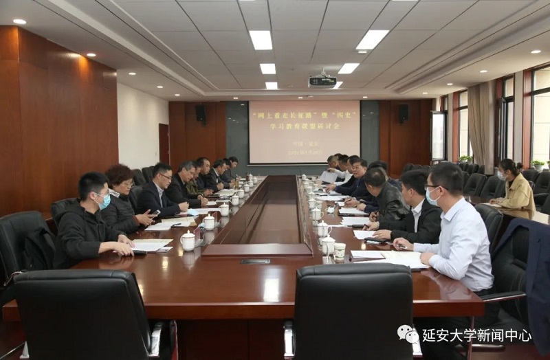 【本网讯】为庆祝中国共产党成立100周年,进一步落实习近平总书记关于“四史”学习教育的重要论述,贯彻落实教育部关于“四史”学习教育的决策部署,传承红色基因,弘扬长征精神,共同走好新时代红色育人之路,根据教育部关于在全国高校广泛开展“四史”学习教育的部署要求,由延安大学倡议发起“网上重走长征路”暨长征沿线红色高校“四史”学习教育联合行动。3月20日上午,延安大学在新城校区行政楼七楼会议室召开“网上重走长征路”暨长征沿线红色高校“四史”学习教育联盟成立筹备会议。