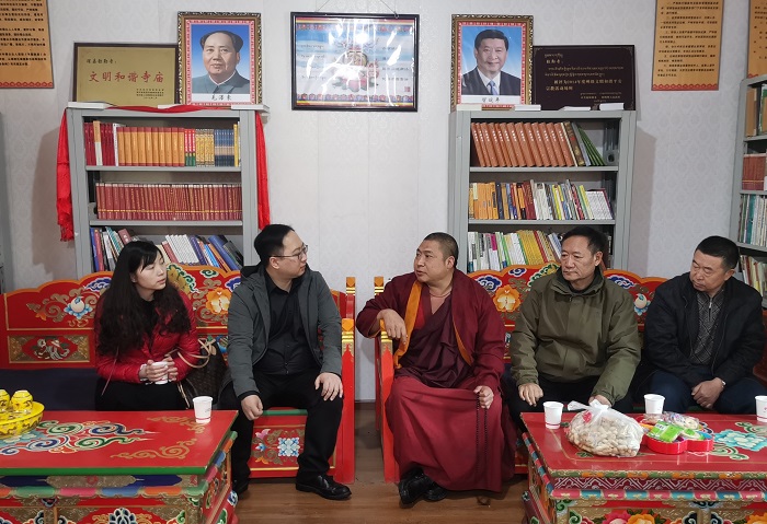 【本网讯】为扎实开展联寺联僧工作,3月26日,学校党委常委、副校长甲任,保卫处处长周国强,协同爱心企业四川宇腾消防工程有限公司董事长郭豫川走访慰问理县弥勒寺僧人阿旺尕让。