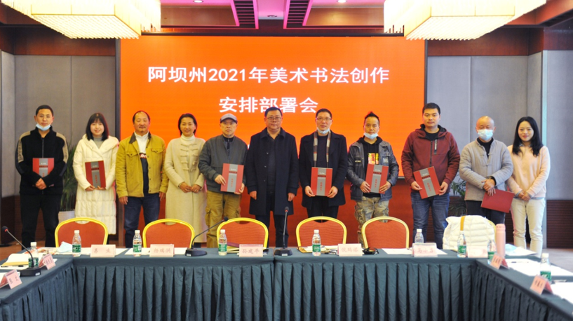 会议安排部署了阿坝州2021年美术书法创作主题:一是聚焦以“中国梦”为主题的现实题材;二是突出以阿坝人文底蕴为主题的特色题材;三是聚焦黄河文化为主题的艺术创作;四是抓好以阿坝绿水青山为题材的生态题材;五是挖掘以红色文化为主题的革命历史题材。随后,与会领导为参加《净土阿坝——向祖国汇报》脱贫攻坚文艺作品展获奖老师颁发入选证和阿坝州文化馆作品收藏证书。