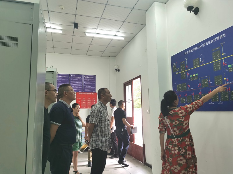 在图书馆,吴昊表示图书馆是广大师生学习的重要场所,后勤基建处要加强物业保洁管理,做好后勤保障服务工作。来到学校水厂,水厂负责人就水厂的运行流程、水质检测、设施设备的使用与维护,以及工作人员的岗位职责等内容做汇报。吴昊对水厂工作表示了充分的肯定,并从应急预案、记录台账、设施更换、监控使用、空置地利用等方面作了指示要求。在电站,吴昊对学校电力运输流程、设施设备使用与维护以及供电房的环境做详细了解,他强调学校自主供电十分重要,后勤基建处要加强与岷电公司、茂坪子村的联系,争取新建一条备用线路,以保障学校的安全用电。