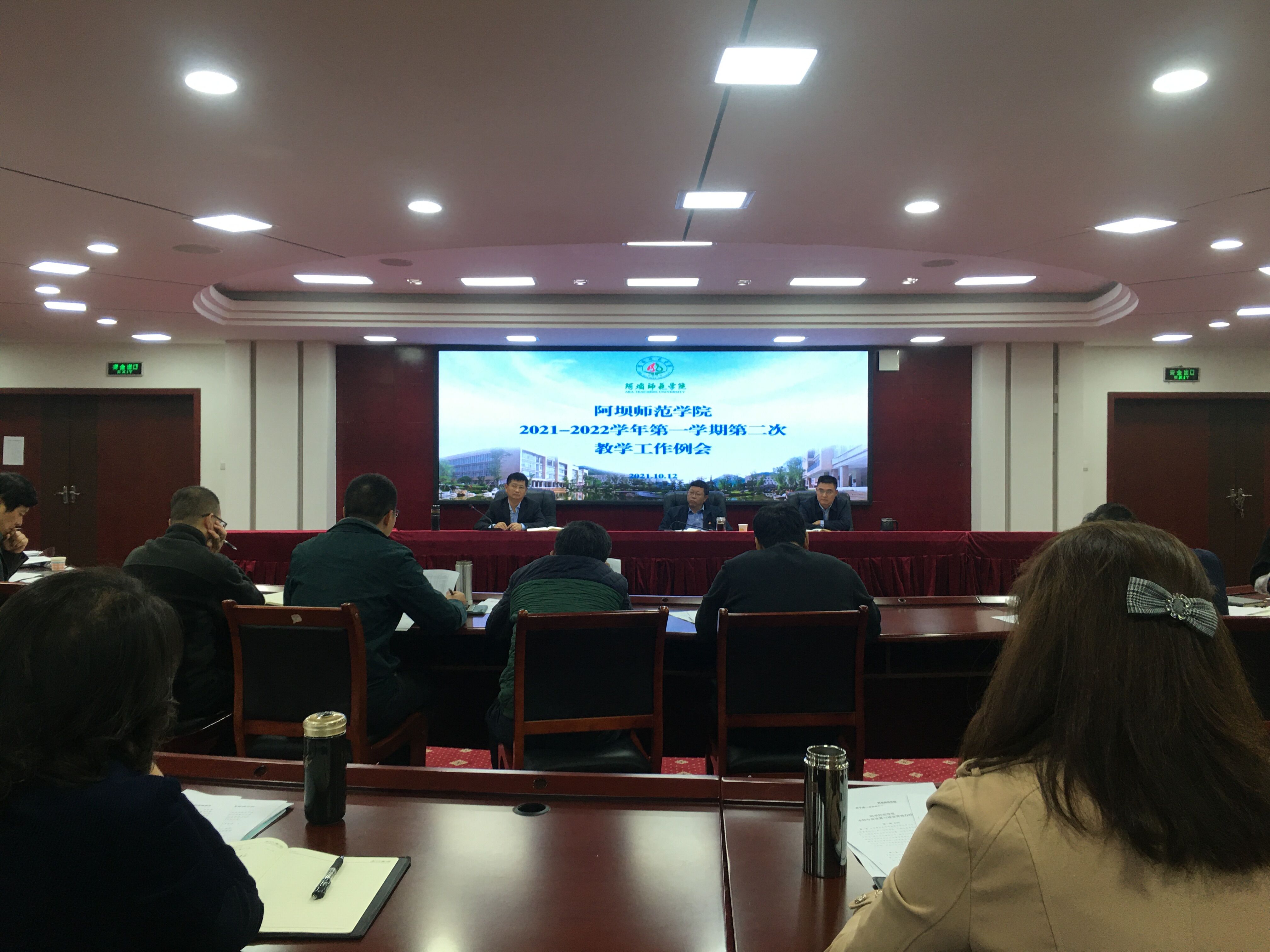 【本网讯】10月12日下午,2021-2022学年度上期第二次教学工作例会在行政楼二楼会议室召开。校长向武、副校长毛英、各二级学院院长、副院长及质量监控与评估处、校团委、图书馆、国资处、教务处等相关部门负责人参加会议。教务处处长吴文权同志主持会议。