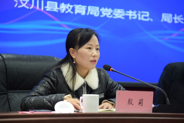 汶川县教育局党委书记、局长殷莉发表讲话。她首先对我校为南部学区搭建了一个良好的平台并提供的大力支持表示衷心的感谢。随后,她讲到,我校作为南部学区的牵头单位不仅为南部学区搭建了一个平台,而且真诚实意的提供了人才服务,为汶川的教育事业发展培养了大量的优秀人才,同时也为汶川地方经济社会的发展提供了大量的智力,源源不断的为教育事业输送新鲜的血液。她对南部学区建设工作、校地合作工作、我校自身建设工作、我校教育教学改革上的工作方式表示肯定。她强调了推进南部学区工作的重要性,并做了接下来工作的思路总结:一、在基础教育方面,在我校的带领下将前期积累的经验推广到全县范围内;二、学科教师方面,希望我校提供机会加强对学区教师的培训;三、县校之间互派教师进行学习锻炼;四、加强教育教学质量的科学评价研究;五、以信息化手段提升教研活动质量。