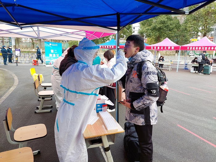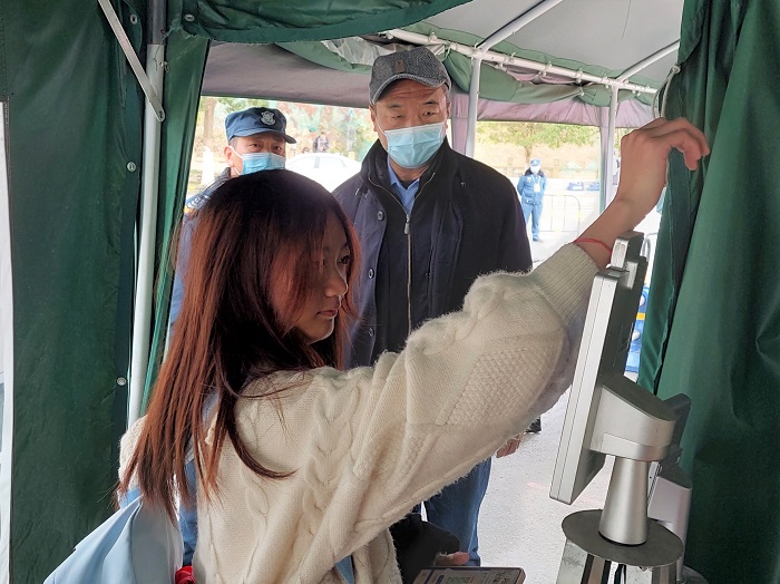 吴昊重点检查了校园门岗防控工作运行情况。全体工作人员各司其职,引导返校学生严格按照规定流程,依次完成消毒、测温、检查核酸检测信息、实地核酸检测、信息录入等各个环节,保证学生安全、有序入校。