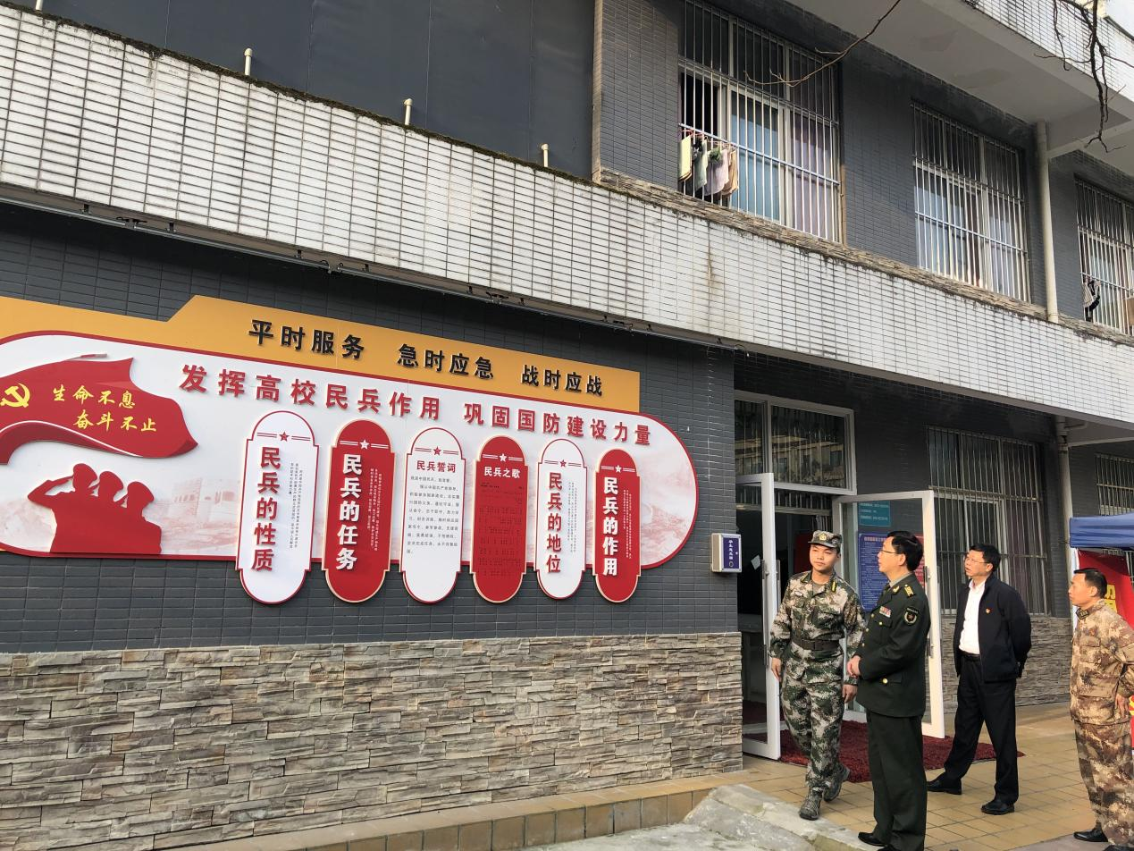 向武对王司令员的到来表示热烈欢迎,并对上级武装部门给予我校武装部建设及民兵排工作的关心和支持表示诚挚感谢。我校民兵排排长黄鹏向领导们简要介绍我校民兵排的建设工作及组织活动开展情况,王司令员逐一参观了我校武装部的“三室一库”及墙文化建设,对我校民兵排的建设和组织开展情况给予“军营型”“兵味浓”的高度评价。