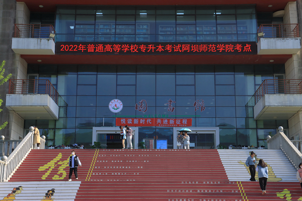 【本网讯】根据四川省教育厅和教育考试院相关通知要求,4月21日至22日,我校组织开展了2022年专升本招生考试工作。按照四川省疫情防控要求,我校特成立2022年专升本工作领导小组,先后组织召开了疫情防控领导小组会议、专升本领导小组会议以保障考试安全顺利进行。会议研究决定,2022年专升本招生考试分7个考点,39个标准化考场,分别设立在阿坝师范学院、阿坝职业学院、川北幼儿师范高等专科学校、四川幼儿师范高等专科学校(绵阳校区)、四川职业技术学院、凉山昭觉县万达融创红丝带爱心学校、红原县邛溪易地育人寄宿制学校,本次考试共有1089人次参加。