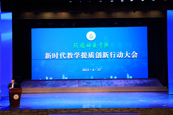 【本网讯】2022 年4月27日14: 00,我校于水墨桃源大剧院举办新时代教学提质创新行动大会。本次会议以教学提质创新大会教学论坛为主题,着力推进教学提质创新,提高人才培养质量。全体校领导、全校教职工参加会议。会议由学校党委常委、副校长毛英主持。