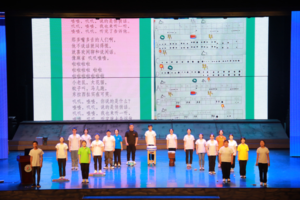 大会第二项议程,优秀示范课展示。马克思主义学院栾雁雁老师、计算机科学与技术学院徐起超老师,音乐舞蹈学院何雨虹老师分别展示了“思想道德与法治”“图形图像处理”“音乐学科教学论”等课程的课堂教学。课堂示范围绕社会热点话题展开,以学生为中心,有机融合课程思政建设和教学方法创新,为全校教师提供了优秀示范。