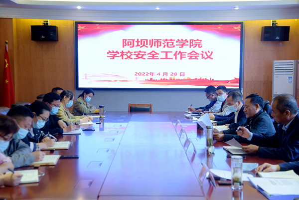 【本网讯】2022年4月28日14:30,阿坝师范学院于行政楼406会议室召开学校安全工作会议。学校党委书记吴昊,党委常委、副院长甲任,党委常委,副院长马昌威,党委常委、副院长宋弘,党政办、学工部、保卫处等相关职能部门负责人及各二级学院党委书记参加会议。会议由甲任主持。