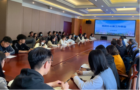 【本网讯】5月2日上午,党政办公室在行政楼406会议室召开部门工作例会。党政办全体教师、全体学生助理以及校史馆讲解员参加会议。会议由党政办公室主任赵勇军主持。