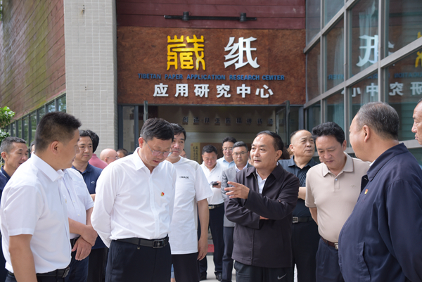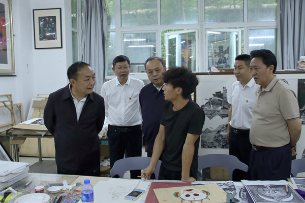 李昌平一行还到我校美术学院,参观了美术学院藏族祥巴工作室、新唐卡工作坊等各个工作室,了解我校具有民族特色的文创产品设计和学生优秀设计作品,并与我校同学进行亲切交谈。李昌平在美术学院应用研究中心考察藏区传统美术文化和藏纸文化时指出,要重视学校发展在推动民族高等教育事业发展中的重要地位和重大意义,阿坝师范学院应发挥好民族院校的优势,打好基础,站稳脚跟,结合高等院校内涵式发展要求,提升学校在全省高校发展中的地位。