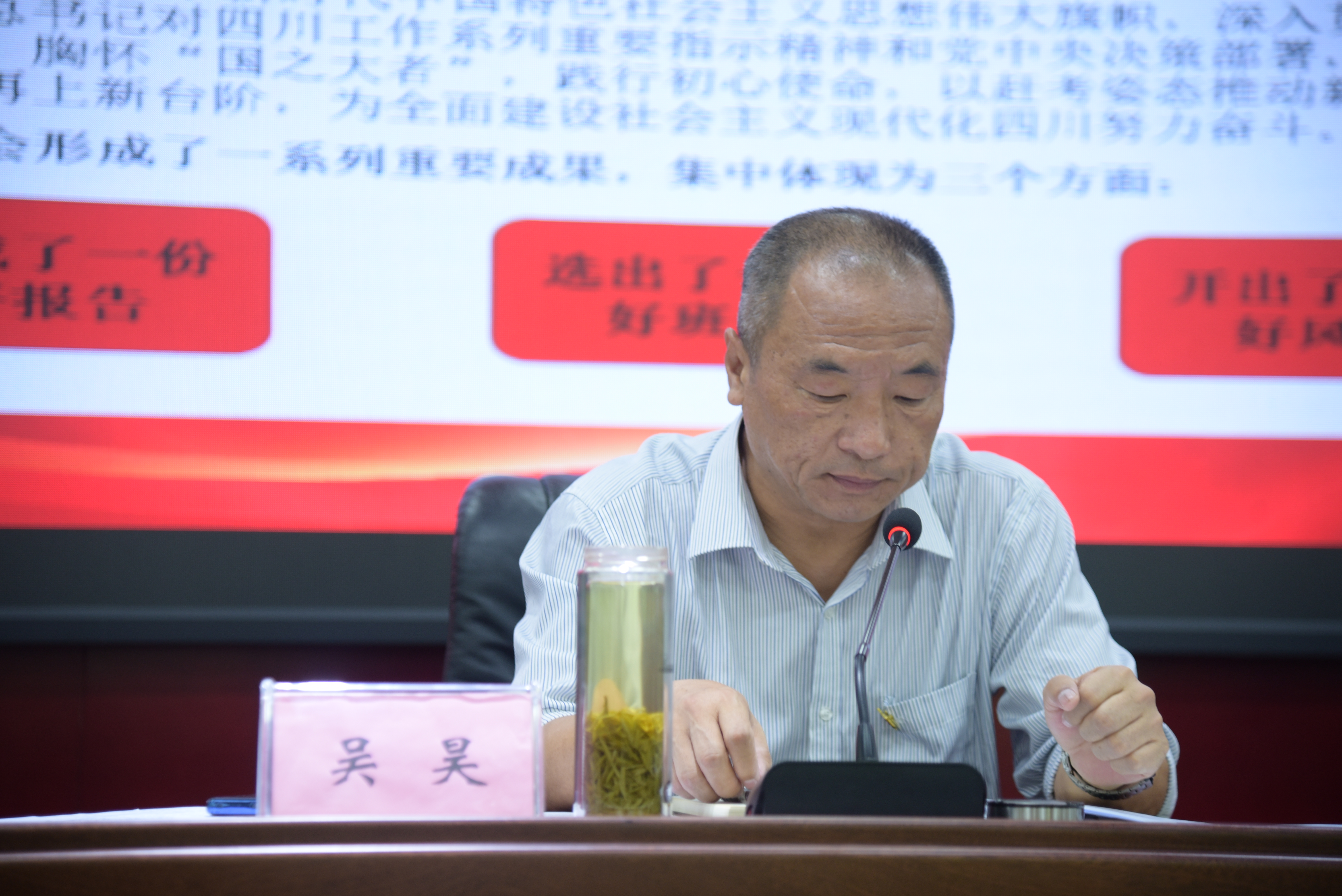 墨重彩的一笔会上,吴昊首先介绍了本次中心组学习的内容安排,接着开始会议第一个主题的领学。吴昊从大会的主题和重要成果、深刻认识和把握四川省第十二次党代会的重大意义、深刻认识和把握新时代治蜀兴川的根本遵循、深刻认识和把握过去五年牢记嘱托砥砺奋进的重大成就、深刻认识和把握新时代治蜀兴川的总体谋划、深刻认识和把握新时代治蜀兴川的战略牵引、深刻认识和把握未来五年经济社会发展的重点任务、深刻认识和把握纵深推进全面从严治党的明确要求八个方面进行了详细地宣讲。各位学员以饱满的政治热情和良好的精神风貌积极参与学习,全程边翻阅学习资料边做笔记。通过聆听宣讲,学员对我省过去五年取得的重大成就、未来五年的总体谋划、重点任务和明确要求有了更加深刻的认识,统一了思想,即本次党代会的召开从思想上、政治上、组织上为新时代治蜀兴川事业发展打下了坚实基础,必将在四川发展历史进程中留下浓。