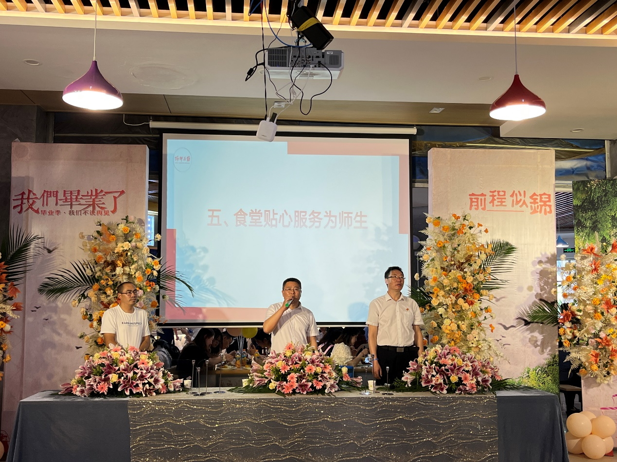 副校长马昌威、学工部部长罗清杨、后勤基建处副处长官孙平依次代表学校、老师和全体后勤员工向2022届毕业生们表示热烈的祝贺和衷心的祝愿。