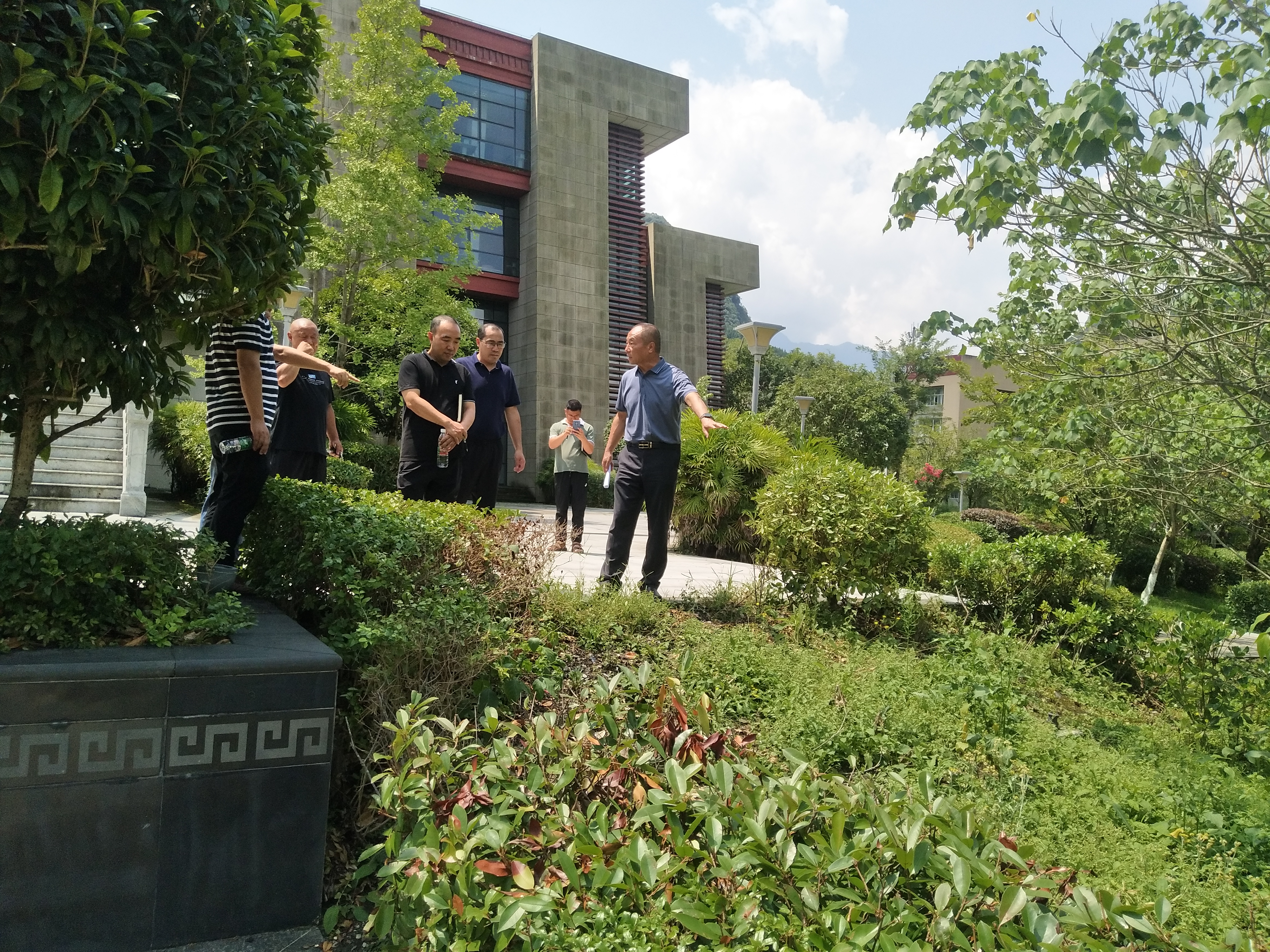 吴昊在听取职能部门负责人工作汇报后,充分肯定前阶段工作,并对大家付出的辛勤工作表示感谢。随后,吴昊带领工作组成员到现场进行检查指导。在学校正大门,检查组成员对现场状况进行了仔细检查、询问,就绿植栽培、路面硬化、地下水排放、门卫管理、机动车辆通行与人行道功能区域划定等相关问题展开深入讨论、交流;在图书馆、西苑餐厅、宣誓广场沿线,吴昊对在建项目施工进度安排、施工安全、砂土回填、树木移栽、周围环境绿化、定制产品安置摆放等提出了建设性指导意见。吴昊要求,一是职能部门负责人要加强与在建项目施工方对接,确保在有限的时间内顺利完成施工任务;二是,要加强对在建项目施工过程的监督检查,做好协调服务工作;三是,对校大门景观改造项目工程要加紧做好前期调研准备工作,及时启动项目招标,确保项目如期施工。