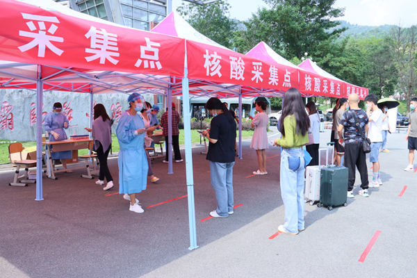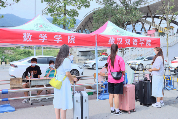 【本网讯】秋风满校园,莘莘学子归。根据阿坝师范学院2022年秋季学期学生返校计划安排,所有学生于8月20日-21日按照“错峰分批”返校的原则,分类别、分年级、分区域开始陆续返校报到,相关职能部门及二级学院工作人员到岗履职,扎实做好学生返校期间疫情防控工作,汶川县中医院专业医护人员协同开展防控工作。学校党委书记吴昊,党委副书记、校长向武,党委常委、副校长马昌威,党委常委、副校长齐泽民深入学生返校一线,检查指导学生返校报到工作,慰问一线工作人员。