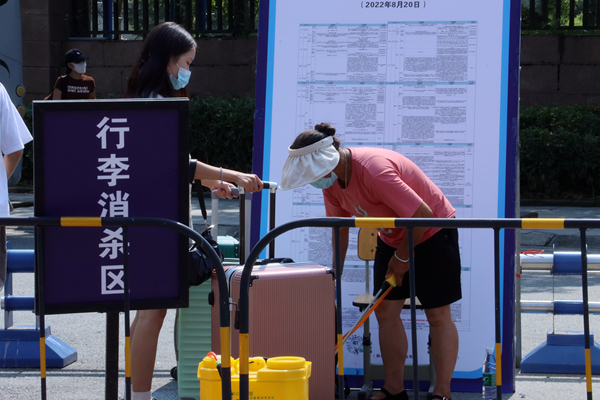 根据疫情防控和校园安全防控有关工作要求,我校对秋季返校工作做了精心组织、细致部署,校团委派出两批次志愿者50人次协助场地布置。报到现场,学生们全程佩戴口罩,学生工作部民兵排、自律委80余人次协助工作人员,依次完成行李消毒、落地核酸检测。尔后,返校学生前往各二级学院接待处报到,查验新冠疫苗接种情况、通信行程卡、健康码、风险城市旅居史以及阿师掌尚通14天健康打卡情况,五项均合格学生持学院发放的“已检验”进门贴交与保卫处人员后,方可进行体温测量,陆续进入校园。