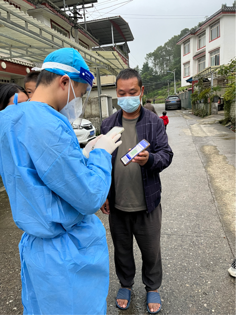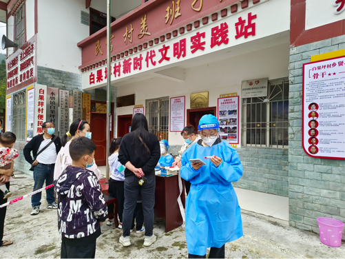 检测现场,待检测居民佩戴口罩,保持一米间距,由学生志愿者们逐一扫码核验身份、登记、采样,单向出入,整个过程有条不紊,并在采样后迅速离场,最后志愿者们跟随医务人员为行动不便的人员进行上门采样,在大家共同协助下完成了此次核酸检测工作。