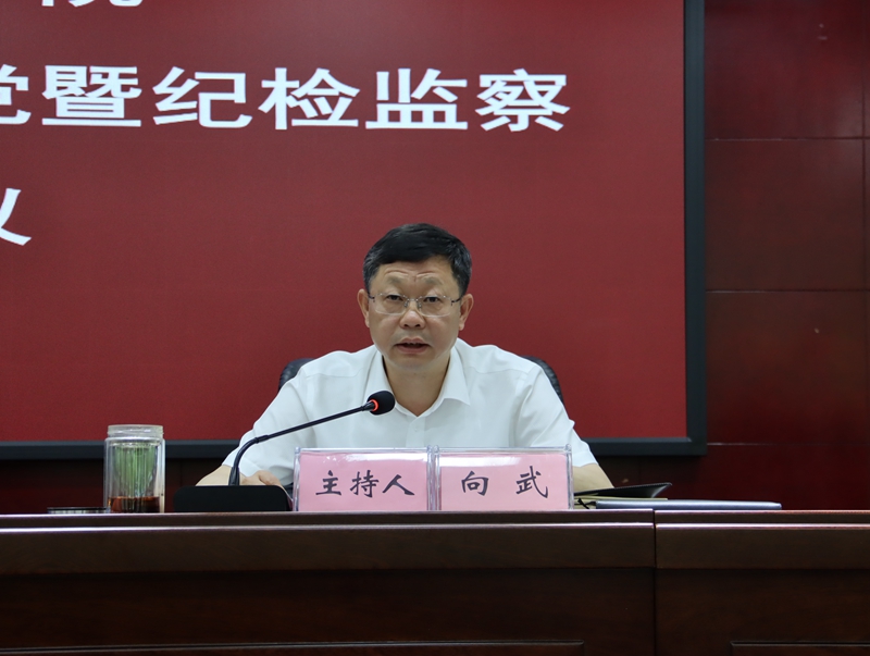 【本网讯】为深入贯彻党的二十大精神,落实中央纪委二十届二次全会精神和省纪委十二届二次全会工作部署。我校于6月7日14:30在行政楼二楼会议室召开2023年全面从严治党暨纪检监察工作会,全体校领导、中层干部及纪委委员、省纪委监委驻学校纪检监察组成员、二级学院党委(党总支)纪检委员、机关党委各支部纪检委员参加会议。学校党委副书记、校长向武主持会议。