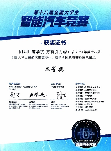 【本网讯】2023年8月17日—19日,第十八届全国大学生智能汽车竞赛总决赛在天津工业大学成功举办。我校物电学院学子在大赛中再创佳绩,万有引力队、逆风翻盘队、银河护卫队均获得全国总决赛二等奖。