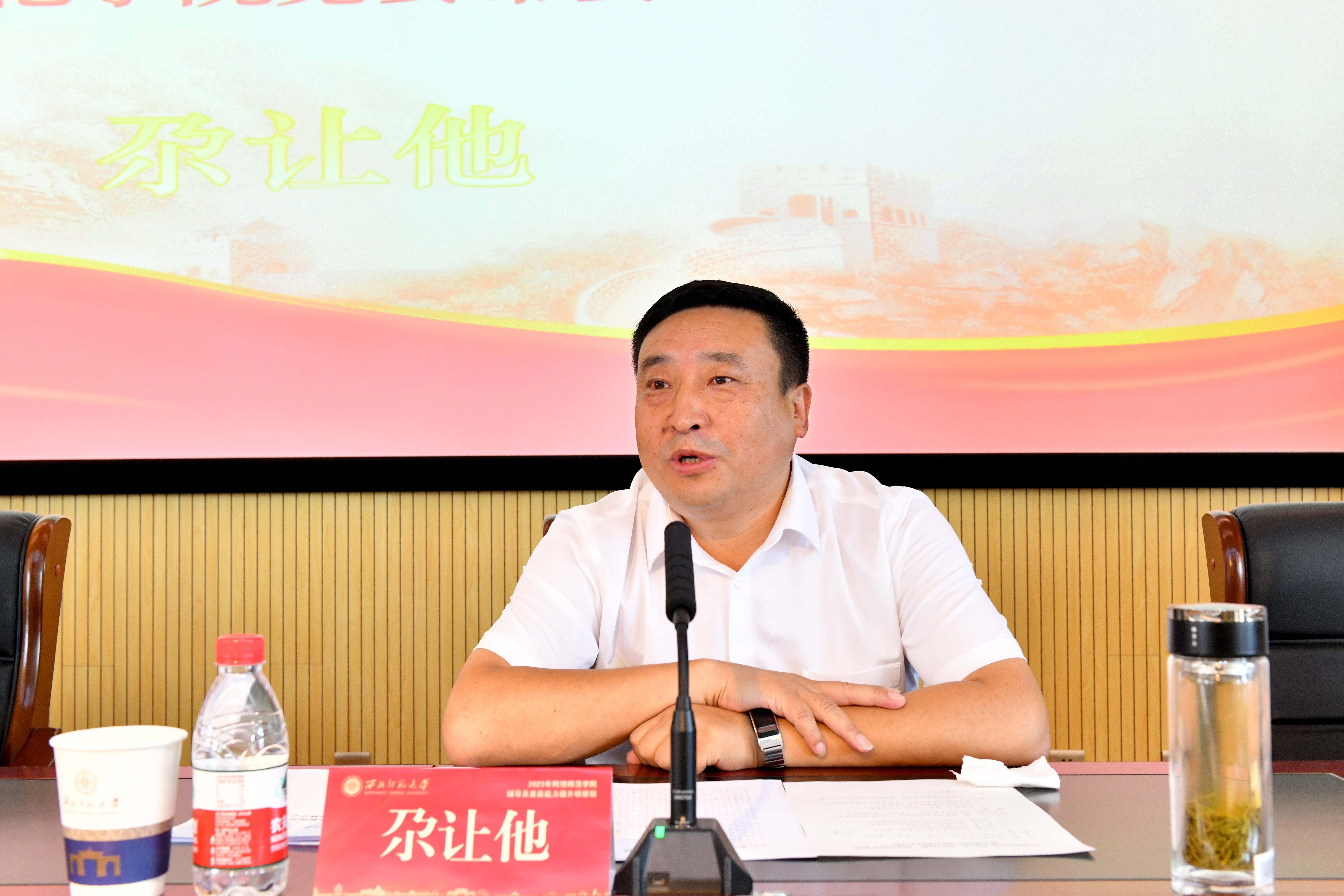 【本网讯】2023年8月23日上午,阿坝师范学院2023年“协同提质”辅导员综合素质能力提升培训班开班仪式在西北师范大学马克思主义学院举行。西北师范大学副校长张明军、马克思主义学院院长史小宁、教育部高校思想政治工作队伍培训研修中心、教育部高校辅导员培训和研修基地行政副主任黎进萍,阿坝师范学院党委常委、副校长尕让他、学生工作部副部长李志坚和40余名参训辅导员参加开班仪式。开班仪式由西北师范大学马克思主义学院副院长、教育部高校辅导员培训和研修基地常务副主任孙健主持。