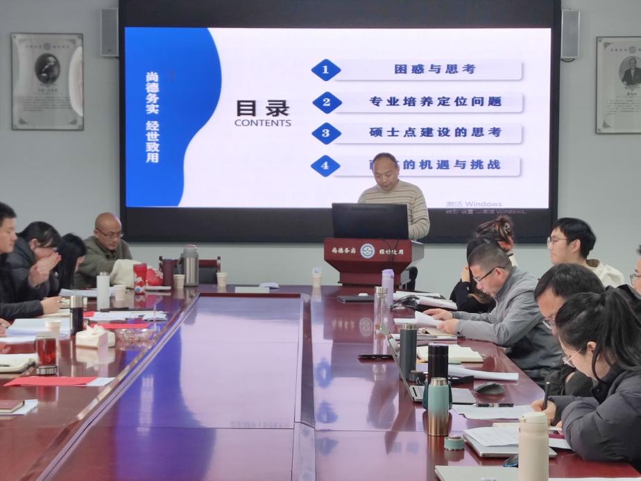 李清茂结合详实充分的调研数据,从旅游管理与服务教育、财务会计教育两个本科专业的培养定位、学院硕士点建设方向、面临的机遇与挑战等三个方面进行汇报。他表示,在学校党政的持续关心、帮助和指导下,学院有信心用3到5年时间,将所有本科专业打造成为一个亮眼的、有阿师特色的应用型专业。财务会计教研室主任马久云、旅游与管理服务教育教研室主任李春雨围绕专业建设相关问题进行了汇报;学院全体教师畅所欲言,充分发表自己的思考与建议,初步形成了发展共识。