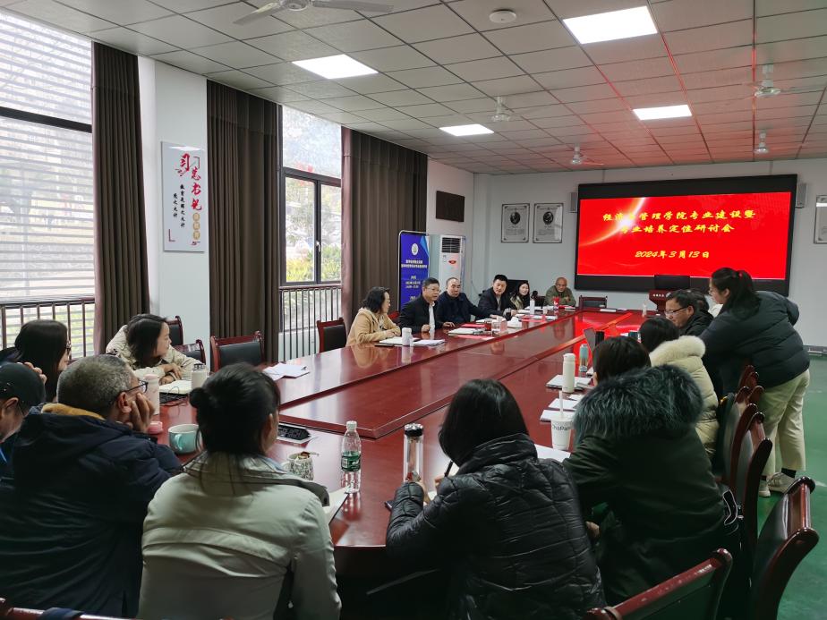 【本网讯】为进一步提升学校专业建设水平,推动学校内涵式高质量发展,扎实推进学校各项工作顺利开展。3月13日,经济与管理学院专业建设暨专业培养定位研讨会在实验楼C栋104会议室举行。校长向武、副校长齐泽民出席会议;经济与管理学院党委书记薛国喜,党委副书记、院长李清茂,副院长赖静及学院全体教师参加会议。会议由薛国喜主持。