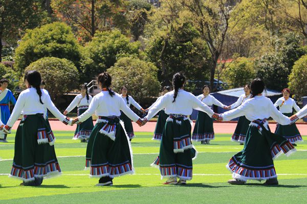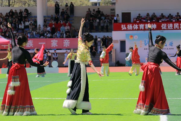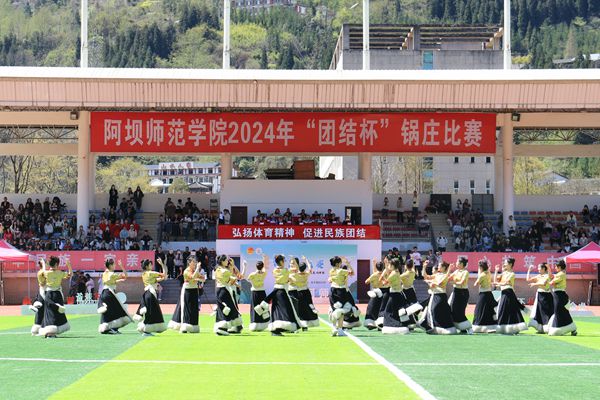大赛在热烈而奔放的舞蹈《吉祥欢歌》中“点燃”,各参赛队伍依次进行会演,他们身着靓丽的传统民族服饰,伴着动感的舞曲,跳着优美而独特的舞姿,犹如一朵绚丽的花在阳光下绽放,每一瞬间都传递着无尽的喜悦;矫健而欢快的舞步如流水般流畅,犹如风中的柳叶轻舞,散发出一种无与伦比的优雅。由藏汉双语学院代表队带来的若尔盖锅庄《甲周玛泽》,跳出了阿坝地区经济发展、民族团结的新景象,舞出了民族儿女赤诚的情怀。比赛在一片欢乐热烈的氛围中进行,团结、奋进、喜庆、祥和的基调充分展示出我校文化事业蓬勃发展的丰硕成果、师生民族团结的良好局面和昂扬奋斗的精神风貌。