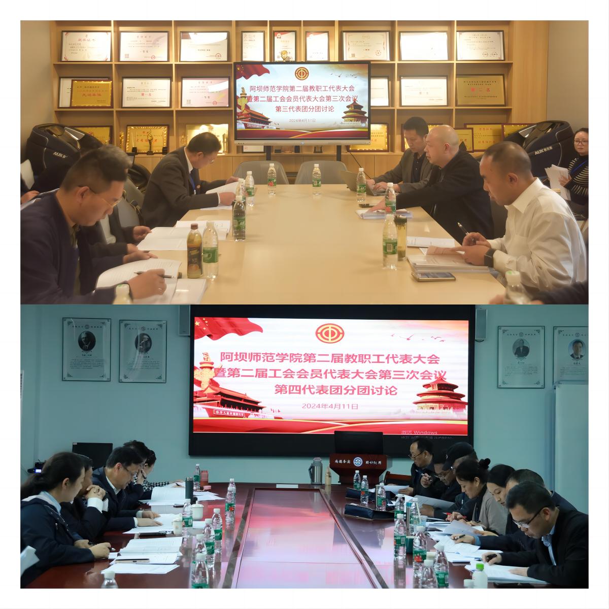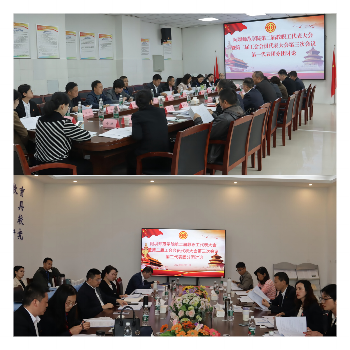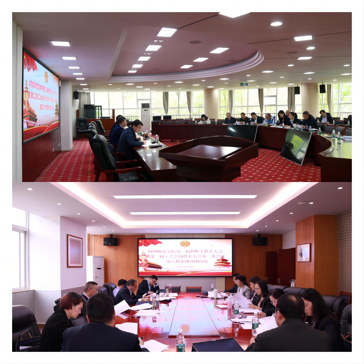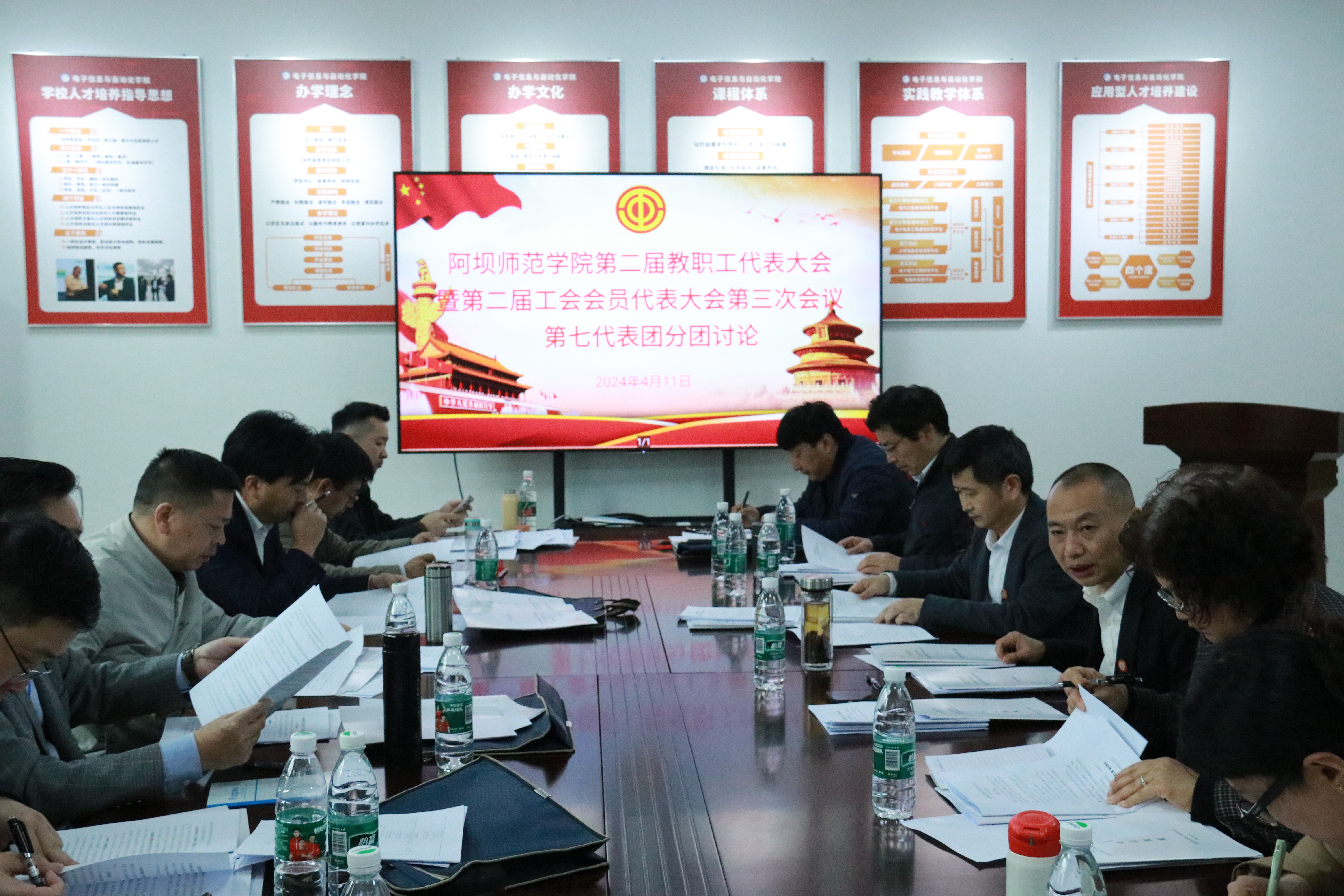 下午2点30分,全体代表分为七个代表团,分别在资源与环境学院会议室、外国语学院会议室、音乐舞蹈学院会议室、经济与管理学院会议室、行政楼二楼会议室、行政楼402会议室、物理与电子电气工程学院会议室开展研究讨论。各代表团高度肯定《学校工作报告》《工会工作报告》《学校财务工作报告》《提案工作报告》《工会经费审查报告》《阿坝师范学院职称评审办法》(2024年版)《阿坝师范学院绩效工资实施办法》(2024年版)《阿坝师范学院聘期岗位工作职责与考核暂行办法》《阿坝师范学院高质量发展三年行动计划》(2024—2026年)的重要价值,并结合实际积极发言。第一代表团就教学科研活动、编外女教职工、团队绩效项目成果等方面提出相应意见;第二代表团就教师职称评审、学校教职工工作任务、拓展学校论文发表途径提出相关建议;第三代表团就学校高质量发展、绩效改革、职称评审、教职工工作相关问题提出意见建议;第四代表团就支教服务、绩效考核、教职工主要任务等方面提出相关意见建议;第五代表团就学科融合、教学科研、教师发展、学校公共设施及泳池安全管理、辅导员评级等问题提出相关意见;第六代表团就工会提案、绩效工资实施、教师职称评审办法方面提出相关意见;第七代表团就全力推进师范类专业认证工作、学科建设、基础设施改造项目、教师绩效工资等方面提出相关建议。与会代表们纷纷表示,将全面贯彻本次会议精神,把思想和行动统一到学校发展建设上来,以崭新的精神状态和饱满的工作热情,敢于创新、团结奋进、勇毅前行,助力学校高质量发展。