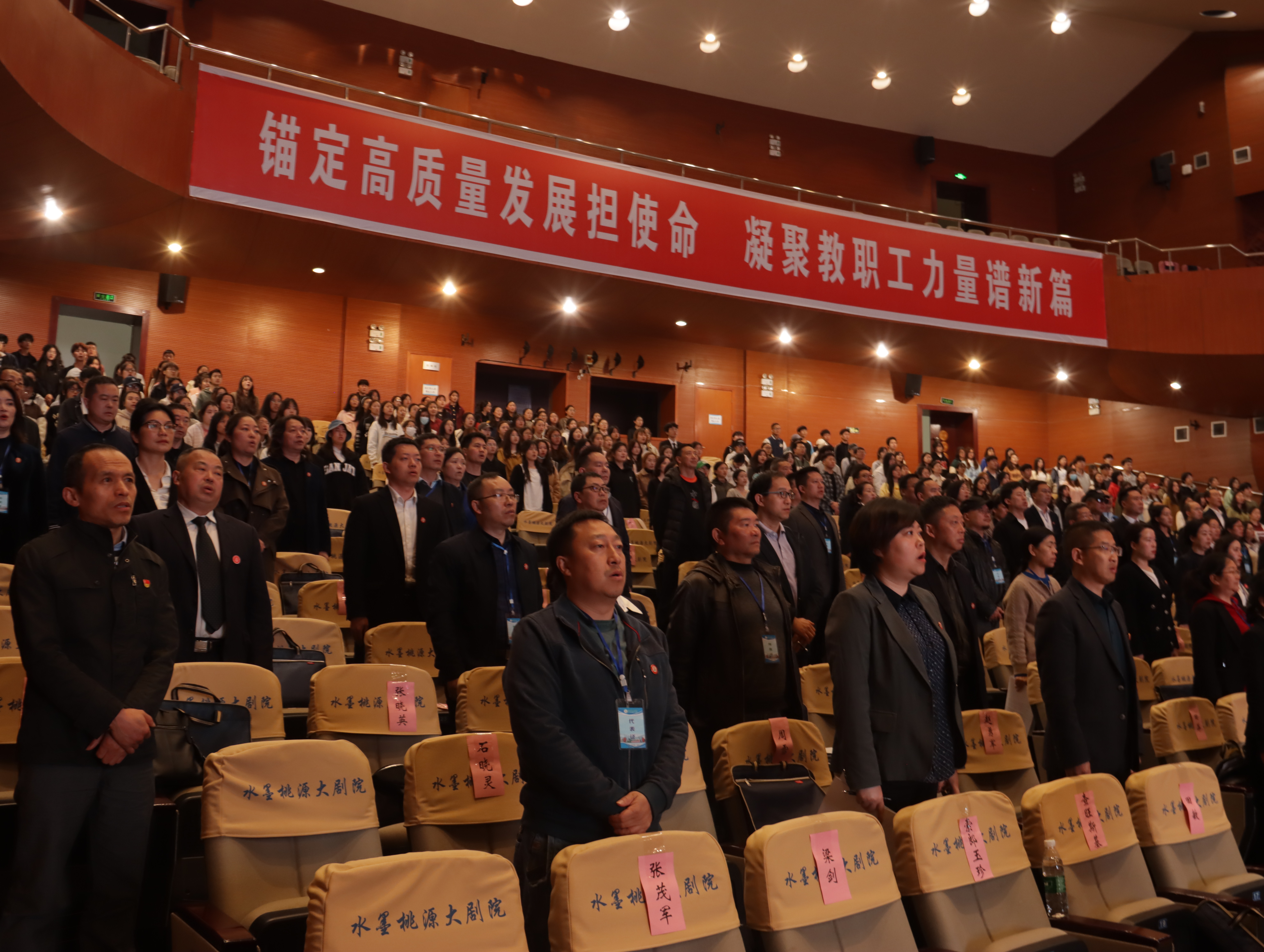 【本网讯】2024年4月11日,我校在水墨桃源大剧院召开第二届教职工代表大会暨第二届工会会员代表大会第三次会议。全体正式代表、列席代表出席本次会议。会议由党委常委、副校长、工会主席宋弘主持。