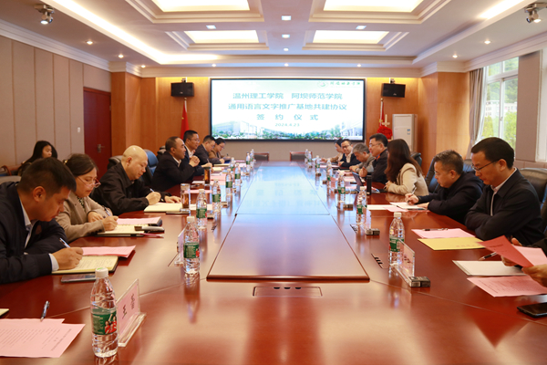 【本网讯】为进一步推广普通话,促进各族师生交往交流交融。我校于2024年4月23日上午10:30,在行政楼406会议室与温州理工学院举行通用语言文字推广基地共建协议签约仪式,温州理工学院党委副书记吕朝晖,党委委员、副校长孙芙蓉,教务处处长连新泽;我校党委常委、副校长齐泽民,教务处处长黄成兵等相关人员参加签约仪式,仪式由黄成兵主持。