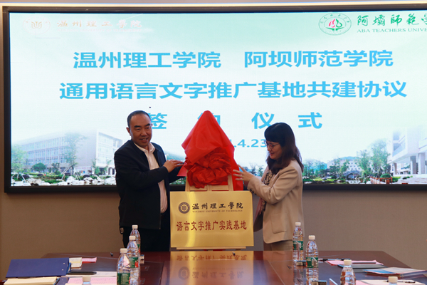 会上学校双方成功举行签约仪式与揭牌仪式。本次仪式的成功举行不仅进一步加深了我校与温州理工学院的合作,同时更促进了通用语言文字的推广。