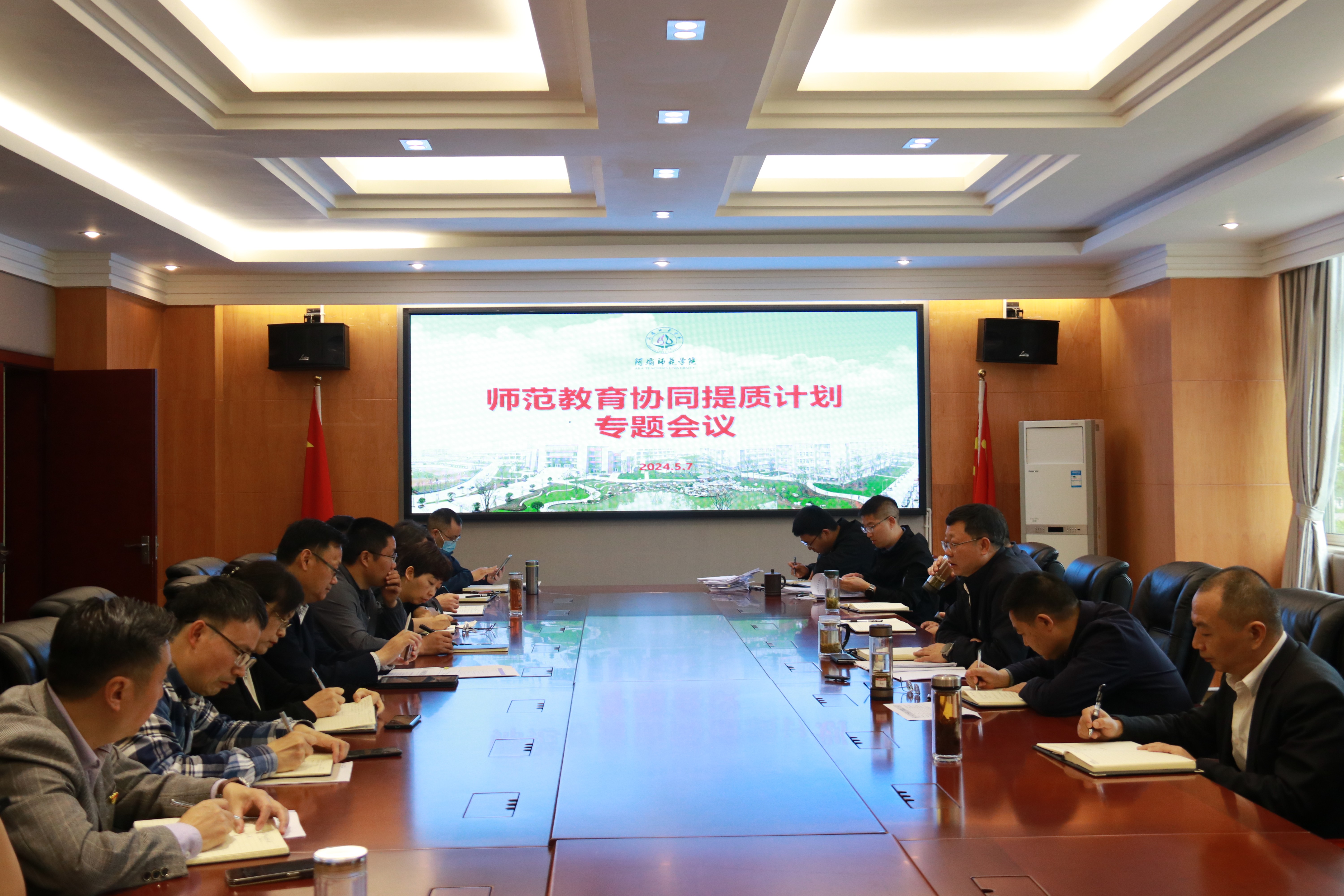 【本网讯】为深入贯彻落实习近平总书记关于教育的重要论述,整体提升我校师范专业办学水平。2024年5月7日上午10:00,我校于行政楼 406 会议室召开师范教育协同提质计划专题会议。学校党委副书记、校长向武,党委副书记毛英,党委常委、副校长、工会主席宋弘出席会议,部分二级单位主要负责人参加会议。