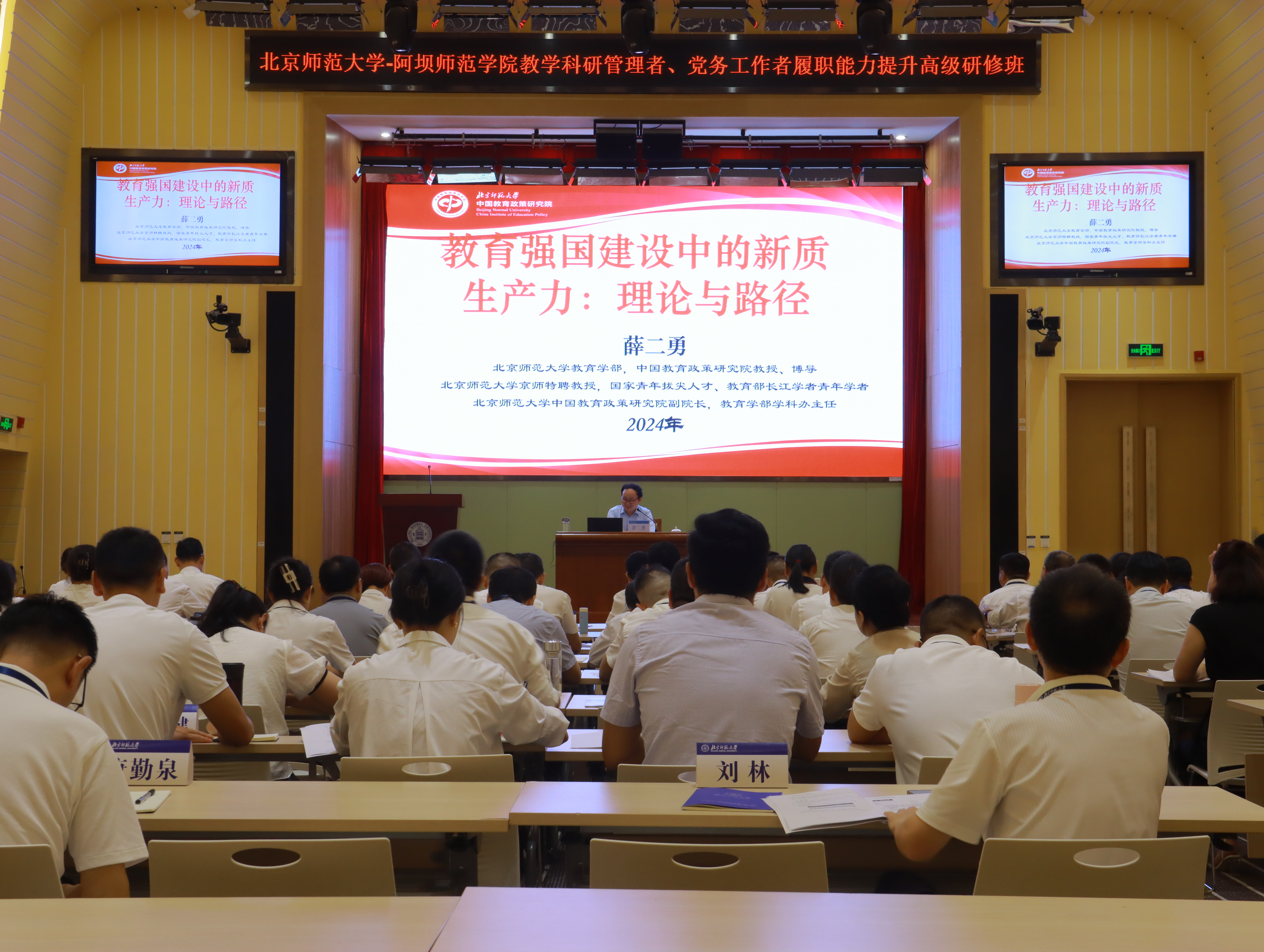 【本网讯】为进一步加强我校干部队伍建设,助力学校高质量发展。根据学校党委统一部署,7月19日至23日,阿坝师范学院教学科研管理者、党务工作者履职能力提升高级研修班专题讲座在北京师范大学陆续开展。