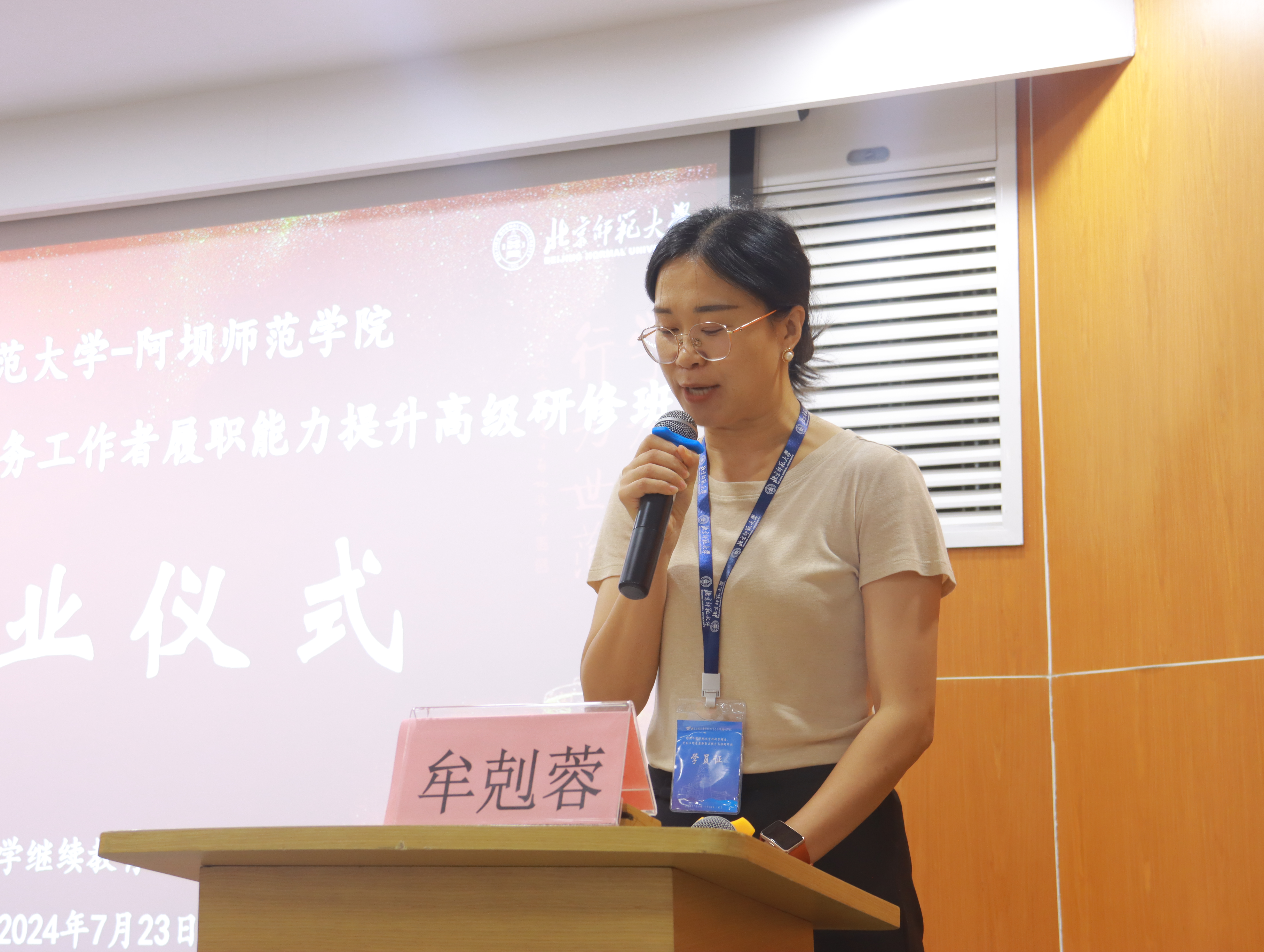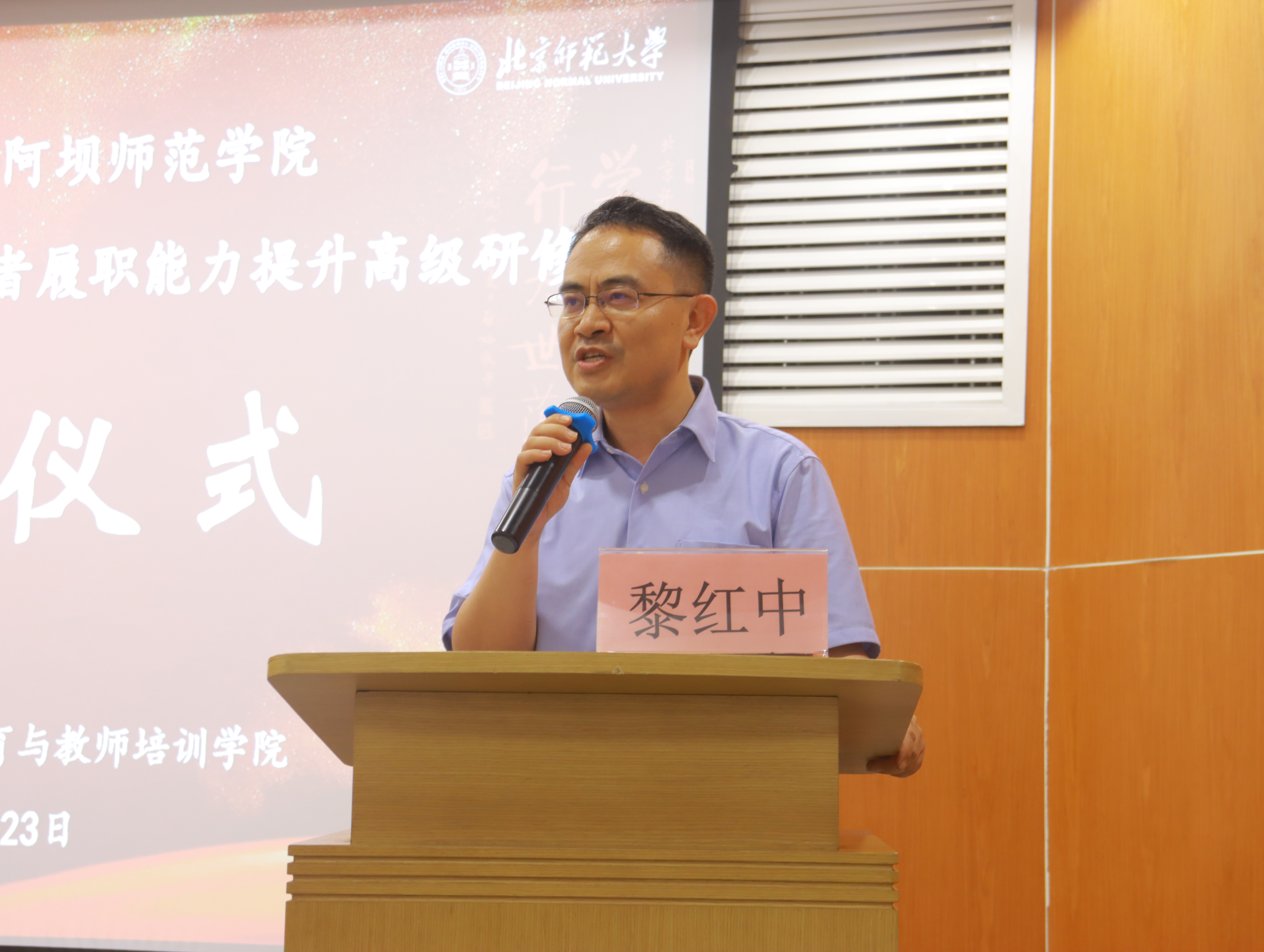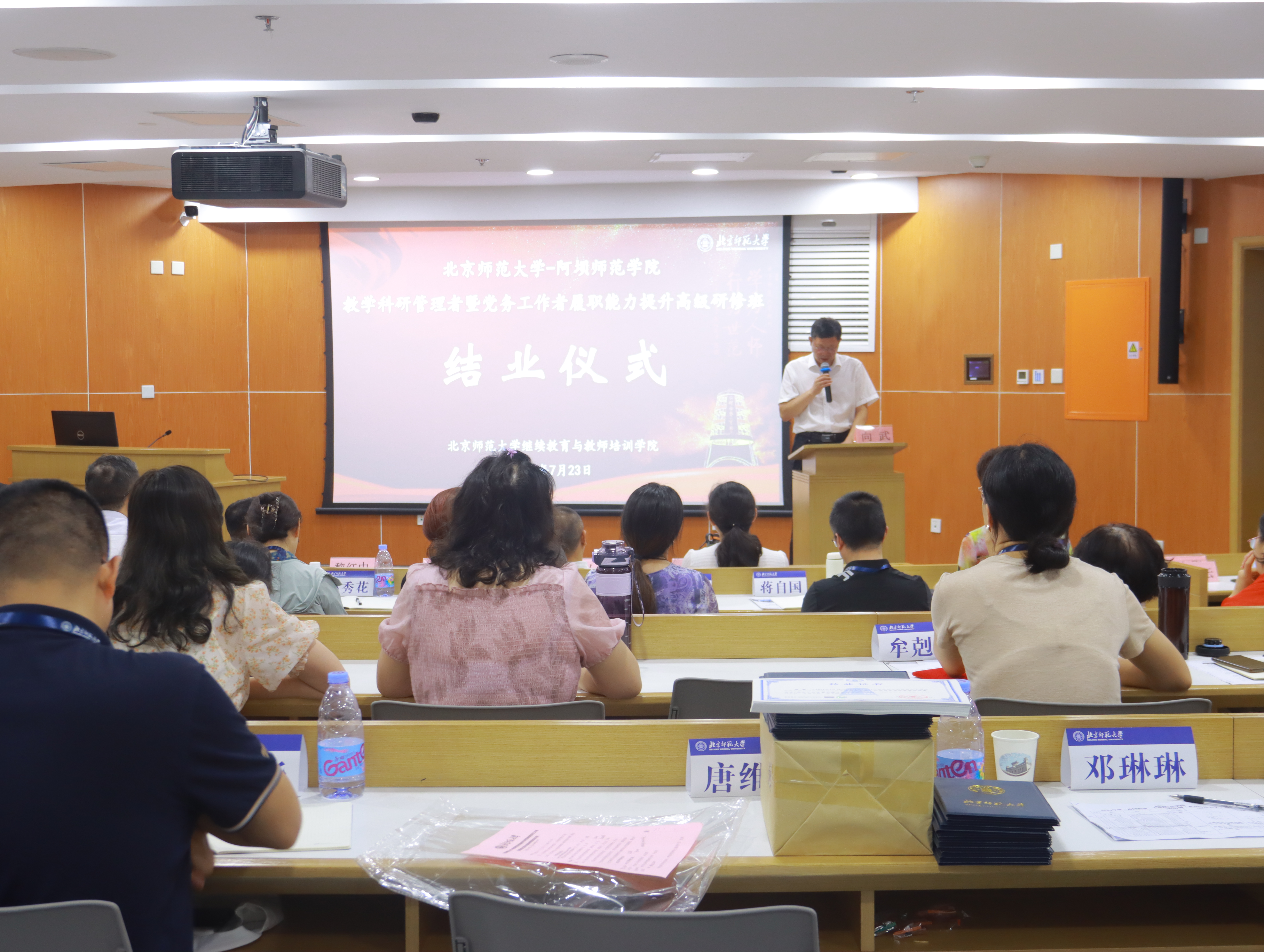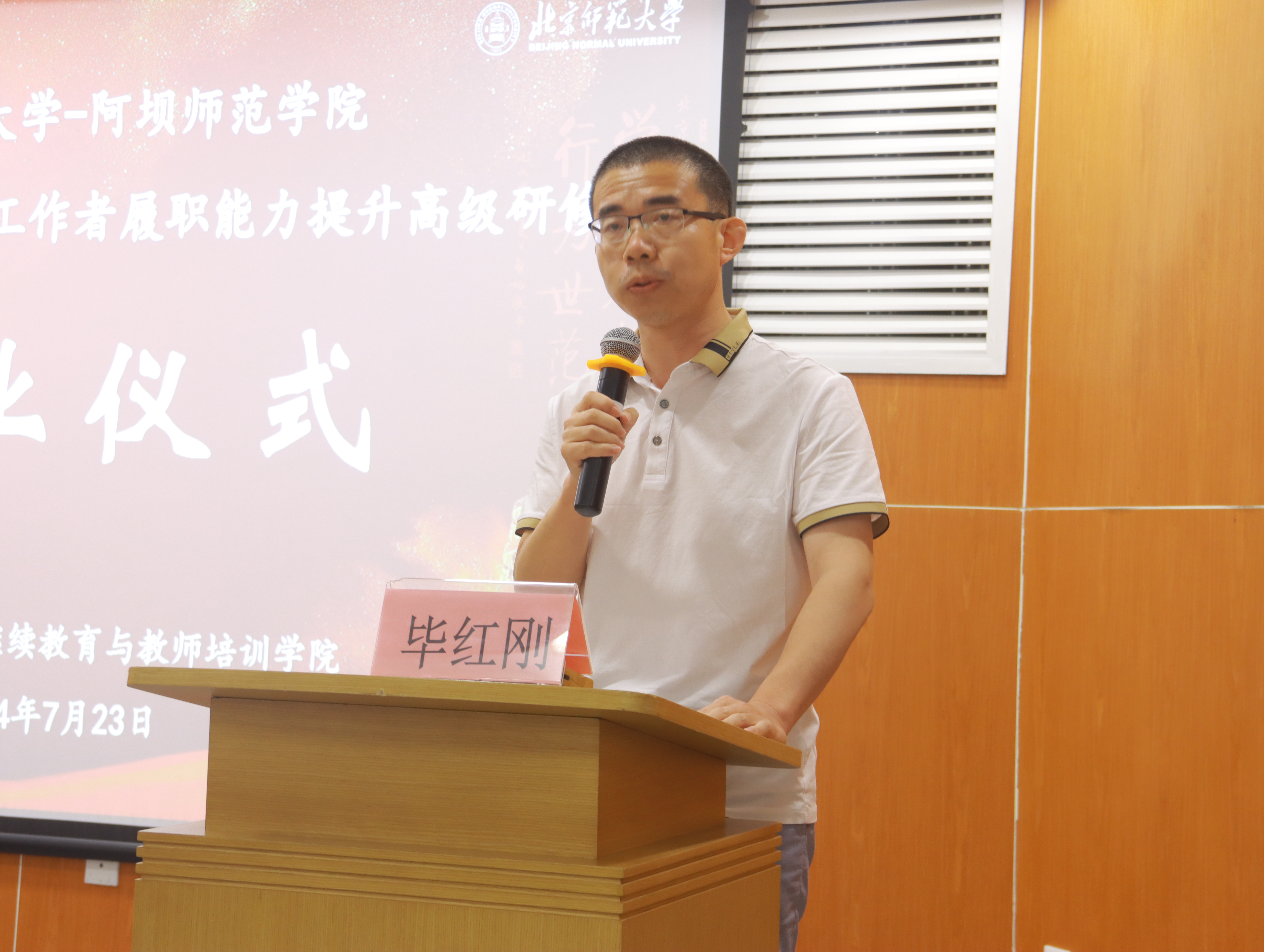 【本网讯】7月23日16:30,阿坝师范学院教学科研管理者、党务工作者履职能力提升高级研修班结业典礼在北京师范大学成功举行。北京师范大学继续教育与教师培训学院副院长黎红中;我校党委副书记、校长向武,党委副书记毛英,党委常委、副校长、工会主席宋弘,党委常委、副校长尕让他出席结业典礼,参加典礼的还有我校70余名中层干部。典礼由北京师范大学继续教育与教师培训学院教师胡迪主持。