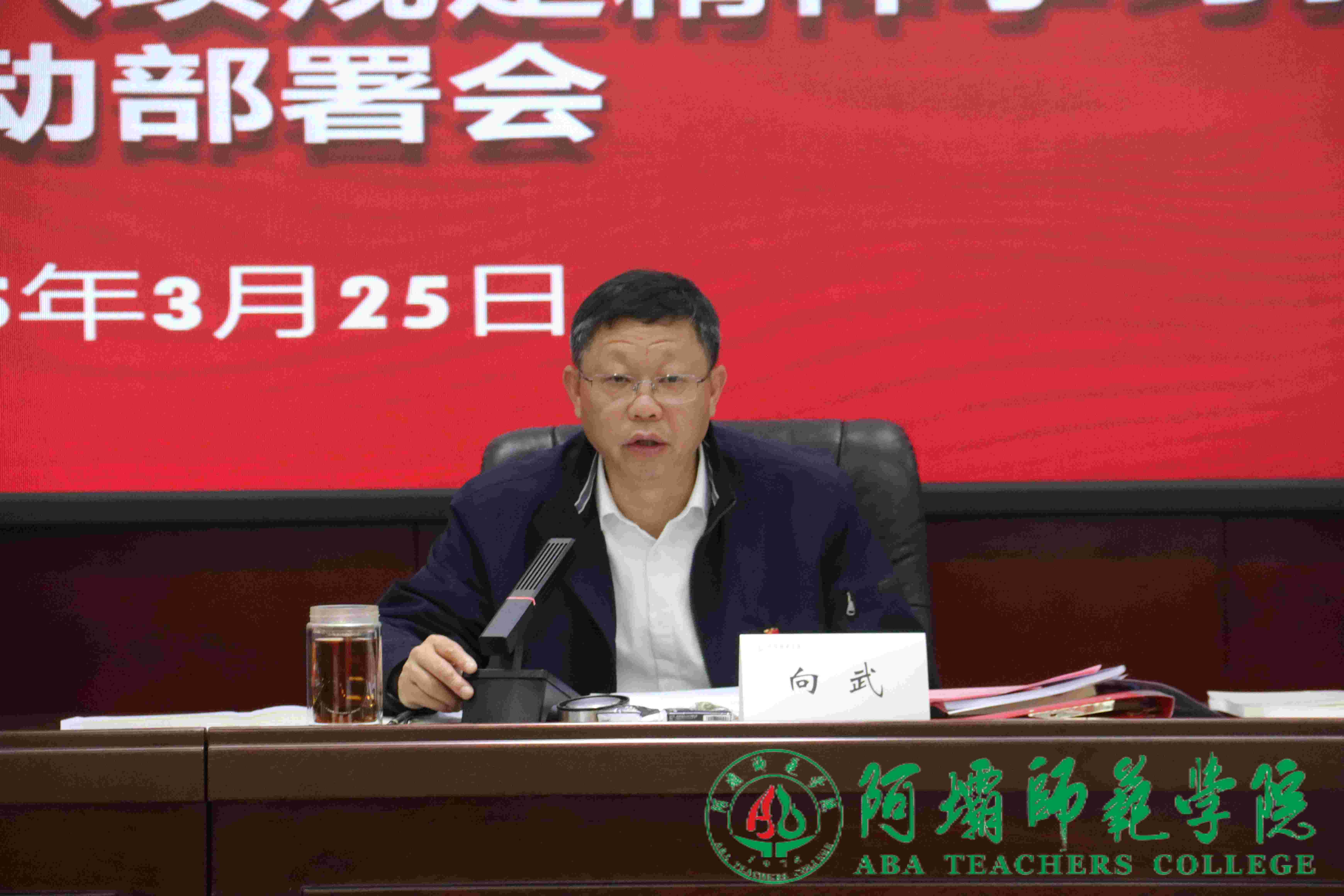 党委副书记、校长向武带领全体中层干部重温了《中共中央八项规定》及《中央八项规定实施细则》。他指出,中办印发《通知》在全党开展深入贯彻中央八项规定精神学习教育是为贯彻落实党的二十届三中全会部署,巩固拓展学习贯彻习近平新时代中国特色社会主义思想主题教育成果,巩固深化党纪学习教育成果,锲而不舍落实中央八项规定精神,推进作风建设常态化长效化。全体中层干部要坚持以人为本、执政为民,带头改进工作作风,带头深入基层调查研究,带头密切联系群众,带头解决实际问题。作为高校管理干部,要弘扬艰苦奋斗、勤俭节约的优良传统,树立过紧日子的思想,严格控制公务接待标准,不铺张浪费,确保学校资金合理使用,为教育事业的发展提供有力保障;要以身作则,带头遵守各项规定,以良好的作风影响和带动身边的人,同时增强服务意识,主动为师生排忧解难,提供高效、优质的服务。