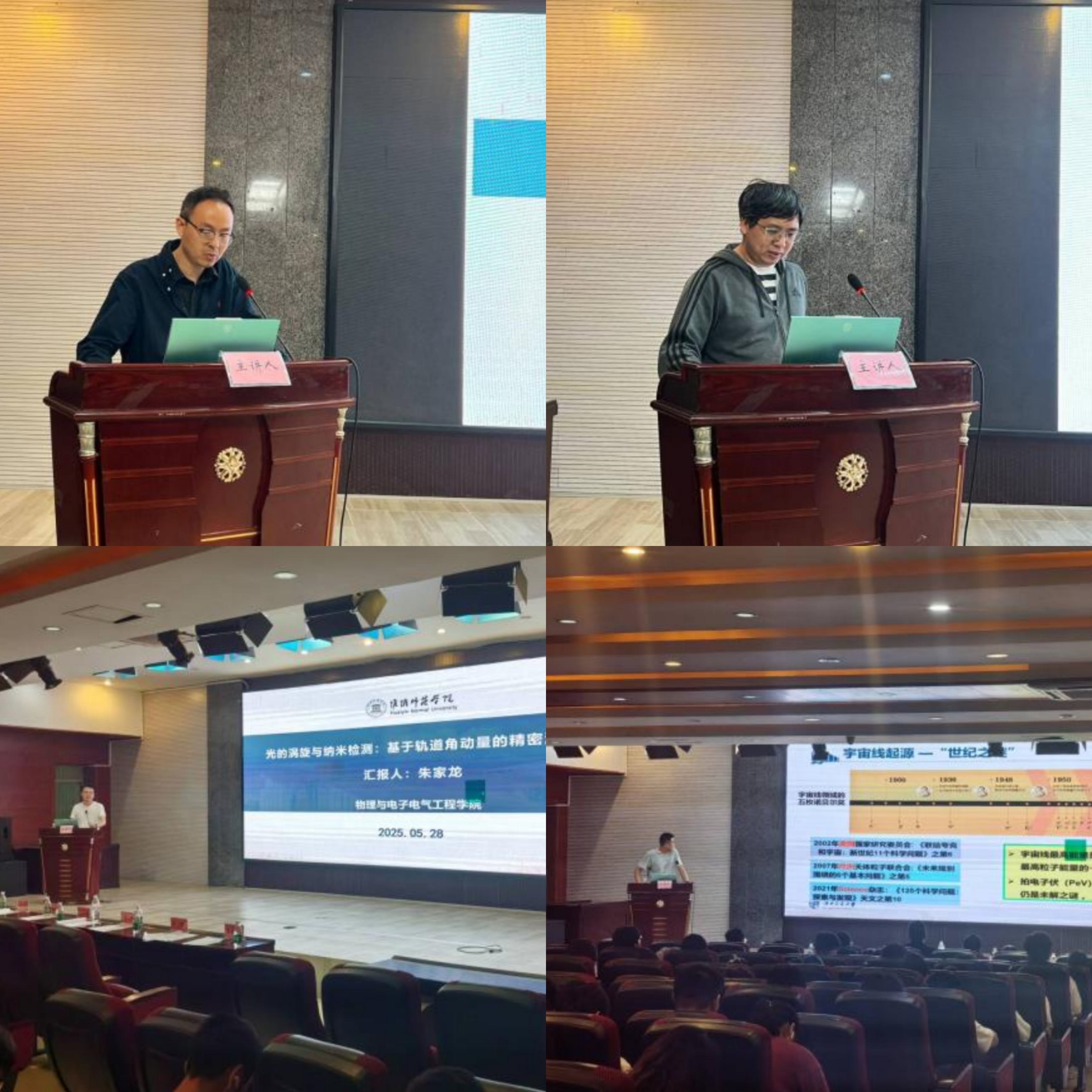 此外,国防科技大学王小伟副教授、华中科技大学曹伟教授、朱家龙副教授阿坝师范学院潘旭博士、王旭东博士等专家学者也分别就阿秒脉冲技术、暗物质探测、光学精密测量、光通信、光学加密和存储等方面的应用、量子场论等前沿课题作了专题报告。