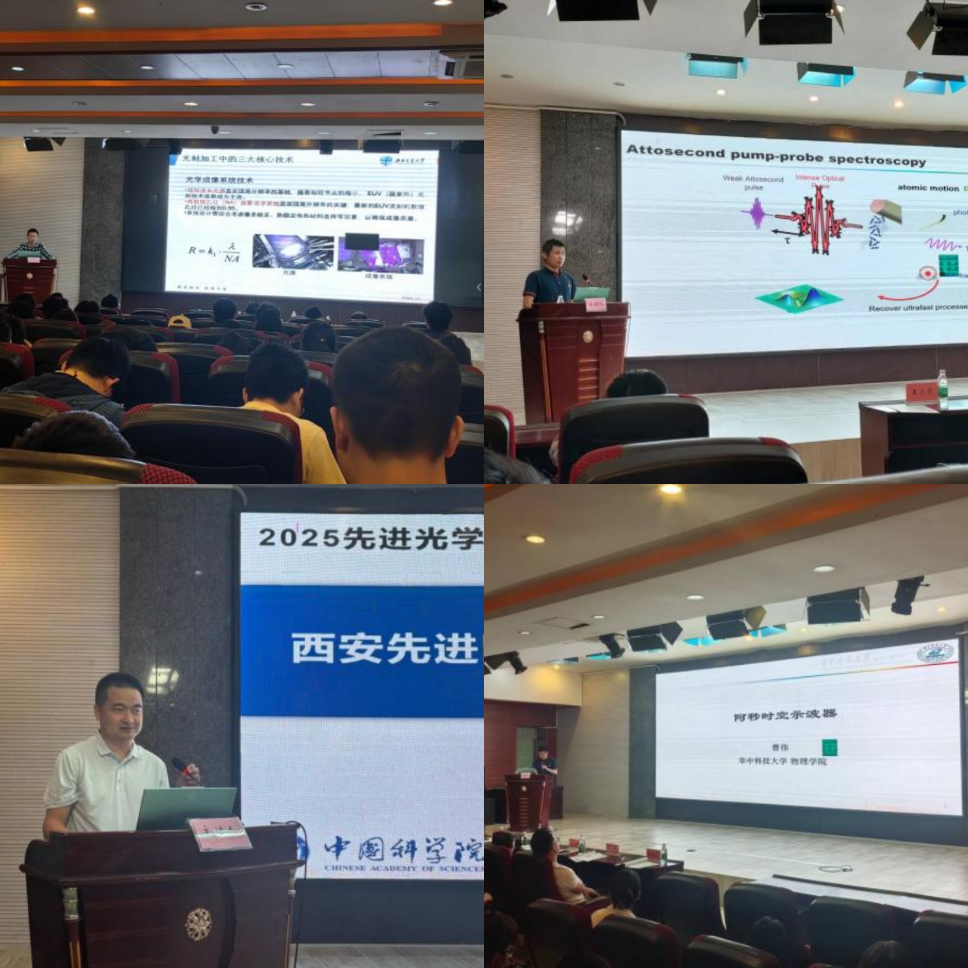 研讨会的主题报告环节精彩纷呈,多位知名专家学者分享了他们的最新研究成果。西南交通大学王楠副教授以《光刻加工与光学检测中的关键技术研究》为题,详细介绍了半导体光学加工技术、光学超分辨检测技术等领域的研究进展,及其在微纳加工和晶圆检测中的应用;中国科学院西安光机所李加林副研究员围绕《“先进同步激光设施”(西安)整体介绍及其前沿产业应用》,阐述了超快光学技术在原子分子和凝聚相超快动力学研究中的重要作用;中国科学院精密测量院康会鹏研究员在《强飞秒光场中的原子双电离》报告中,分享了强飞秒激光与原子分子相互作用的最新研究成果,展示了其在光物理领域的突破性进展;吉林大学刘爱华教授以《超快超强原子分子物理与动力学理论》为题,介绍了受限富勒烯团簇超快动力学调控理论模型及其在光电响应领域的应用。