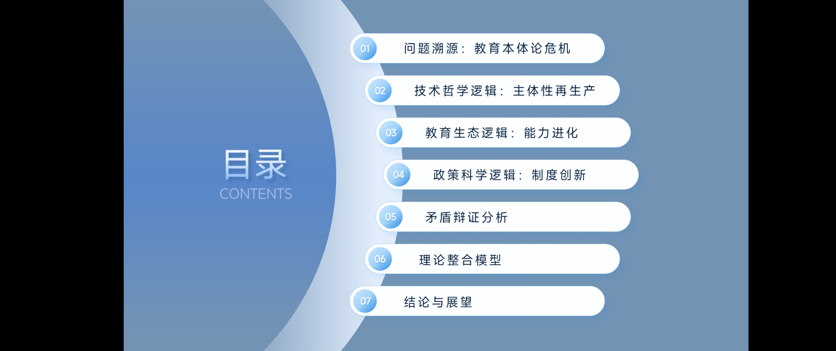 他强调,教师的核心使命在新时代背景下转变为在技术赋能中守护人文内核的“价值锚定者”。技术与教师主体的深度融合将成为未来教育发展的关键。在技术哲学逻辑层面,教师应积极采取抗解码策略,融入人文学科内容,培养学生的批判性思维,同时建立教育免疫系统以抵御技术的负面影响。在教育生态逻辑层面,教师角色从知识传递者向认知策展者、生态协调者演进,需建立技术介入的生态阈值模型,弥合数字原住民与数字移民之间的认知鸿沟。在政策科学逻辑层面,他建议推动数字素养制度化、师范教育改革和组织生态进化,建立科学合理的梯度认证模型,深化师范教育改革,推动教育制度创新。