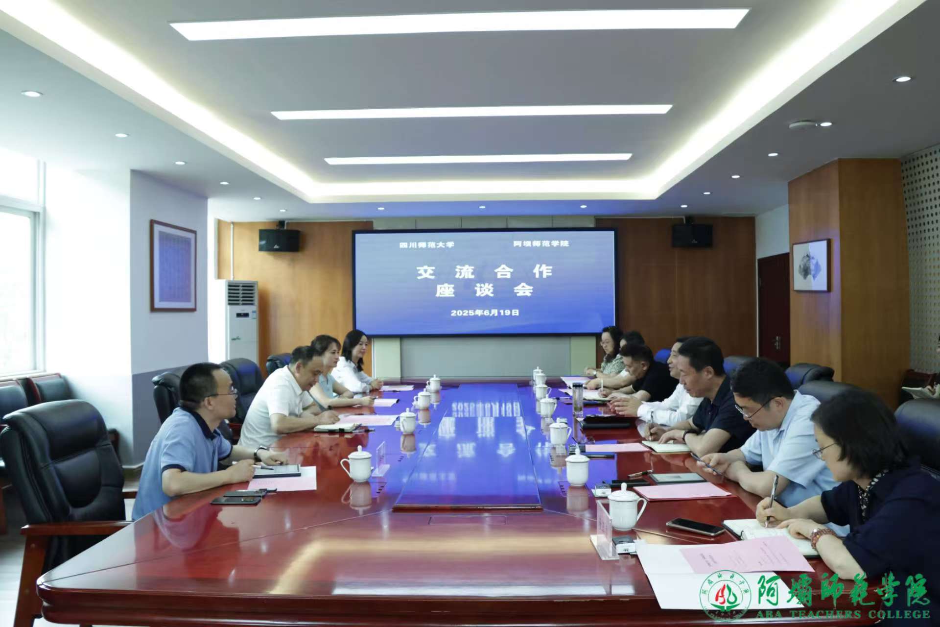 尕让他详细介绍了我校基本情况,重点介绍了我校服务地方经济社会发展有关情况。他指出,近年来,阿坝师范学院坚持服务地方经济社会发展,通过建立汶川南北学区“教育联盟”推动县域教育均衡发展,在促进教育资源共享、提升教育质量方面取得了显著成效。学校还派驻了驻村干部扎根基层,推动乡村产业发展与基础设施建设,并选派艺术专业教师担任“艺术村长”,充分挖掘文化资源,提升乡村文化内涵,为乡村振兴注入了强劲动力。