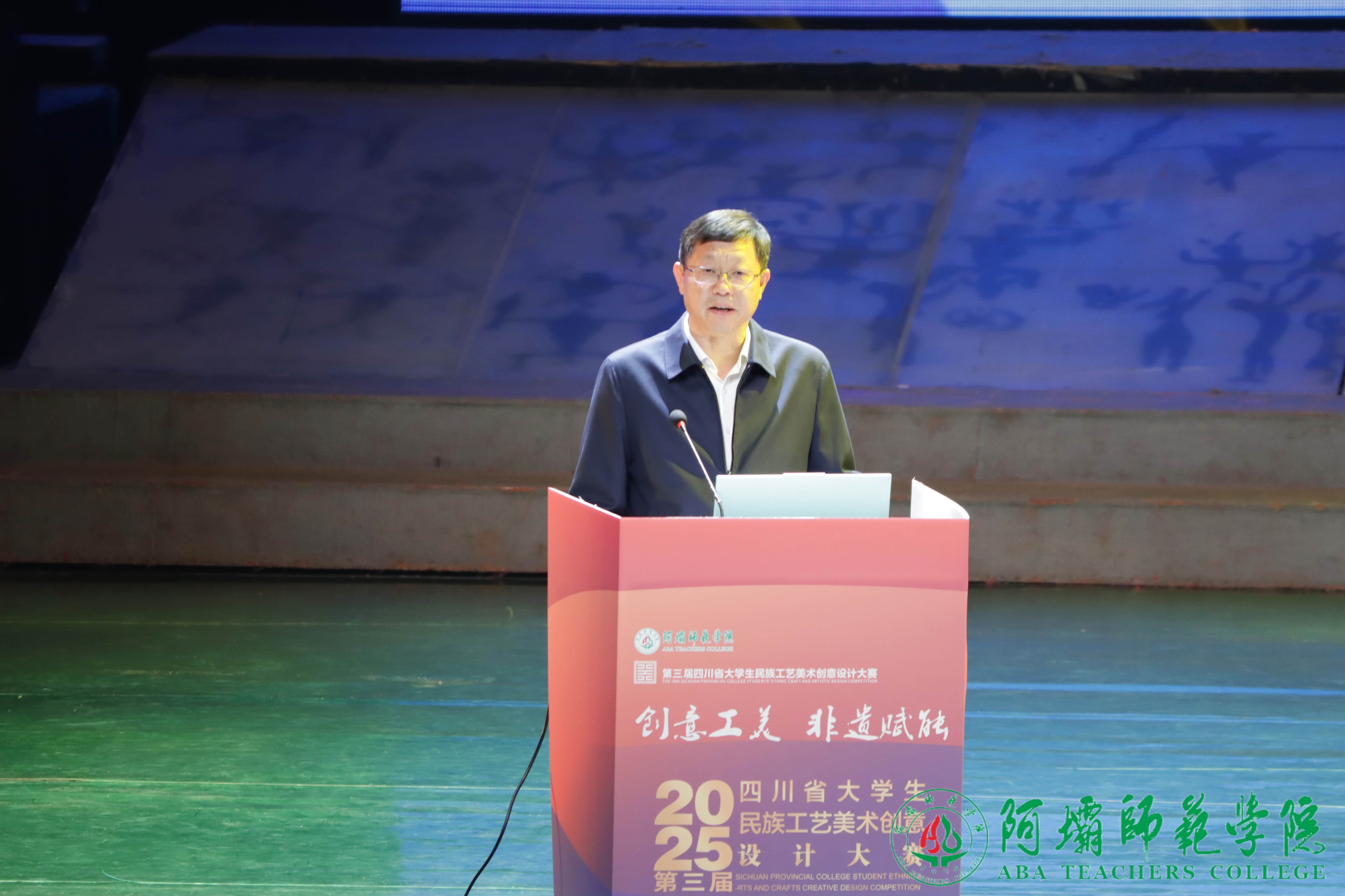 【本网讯】10月19日下午,第三届四川省大学生民族工艺美术创意设计大赛颁奖典礼在我校桃源大剧场隆重举行。学校党委副书记、校长向武,省纪委监委驻校纪检监察组组长、党委副书记、纪委书记朱建军,学校党委常委、副校长齐泽民出席活动,与全省高校师生代表齐聚一堂,共同见证这一荣耀时刻。