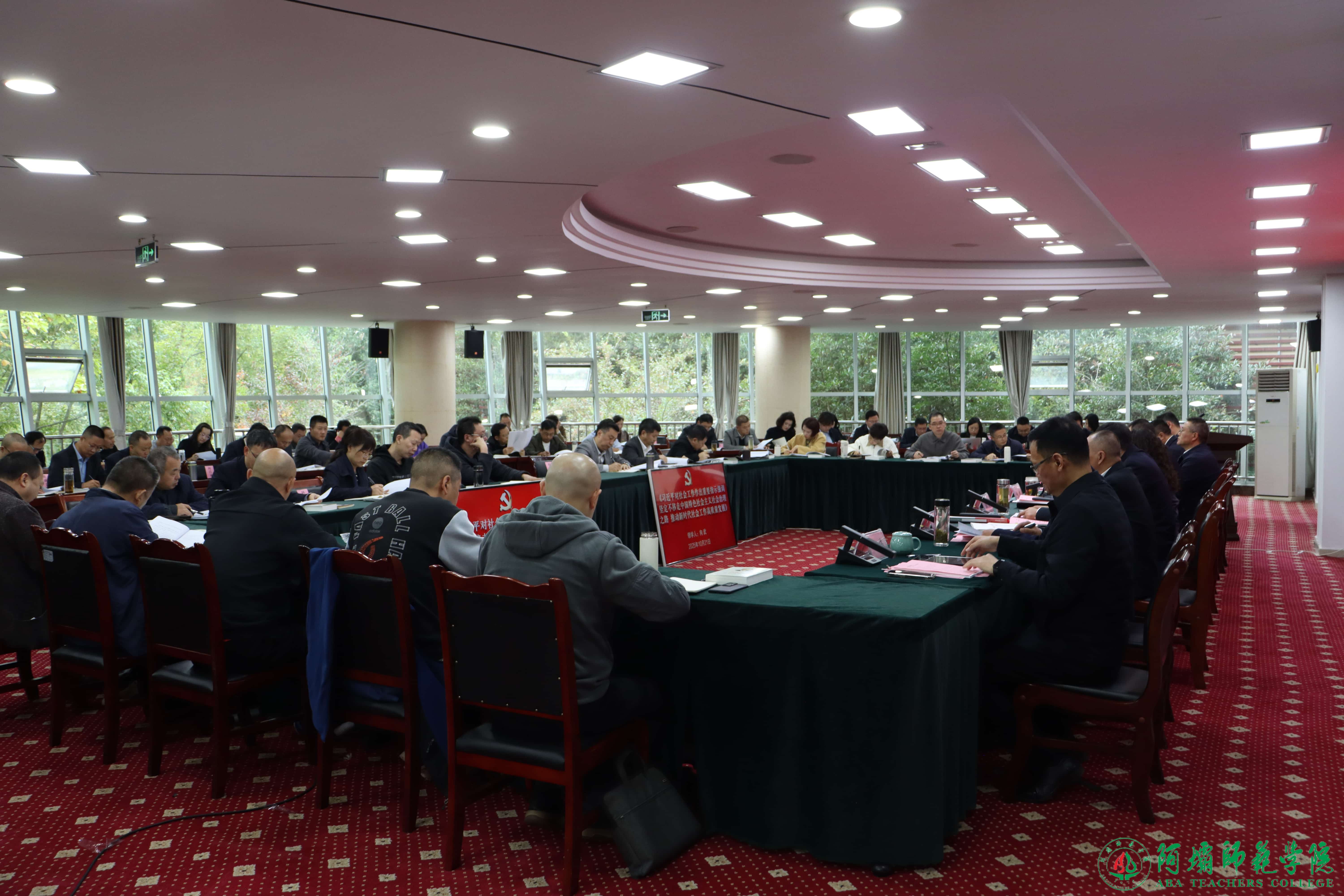 【本网讯】10月21日15:10,阿坝师范学院党委理论学习中心组学习会在行政楼二楼会议室召开。会议以“结合《习近平谈治国理政》的重要理念,深刻学习领会习近平关于加强社会工作、提升社会治理效能的重要论述,奋力开创我校服务地方社会治理与社会工作人才培养新局面”为主题。学校党委书记衡彤主持会议。