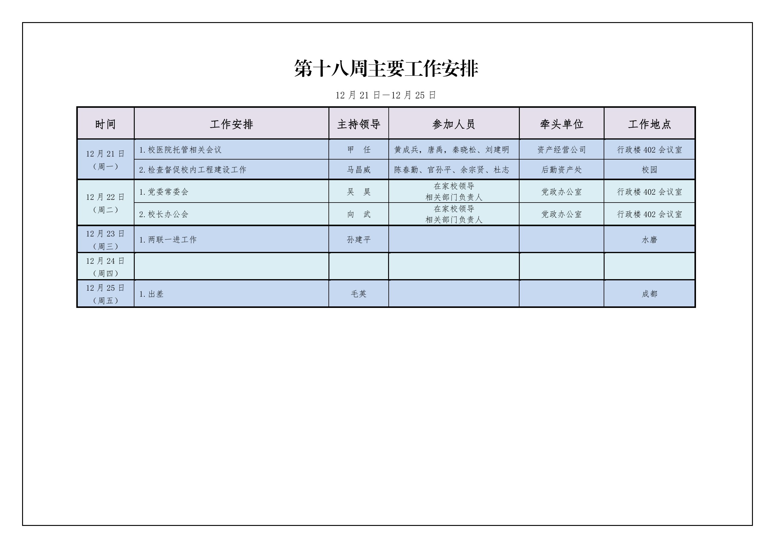 校领导工作安排