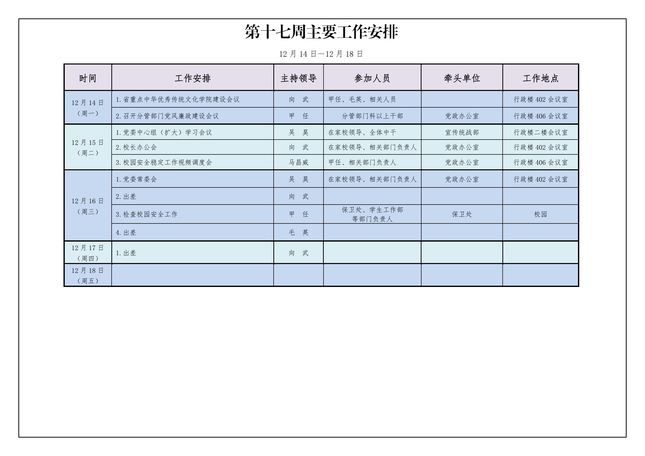 2020-2021学年度第一学期学校领导第十七周主要工作安排