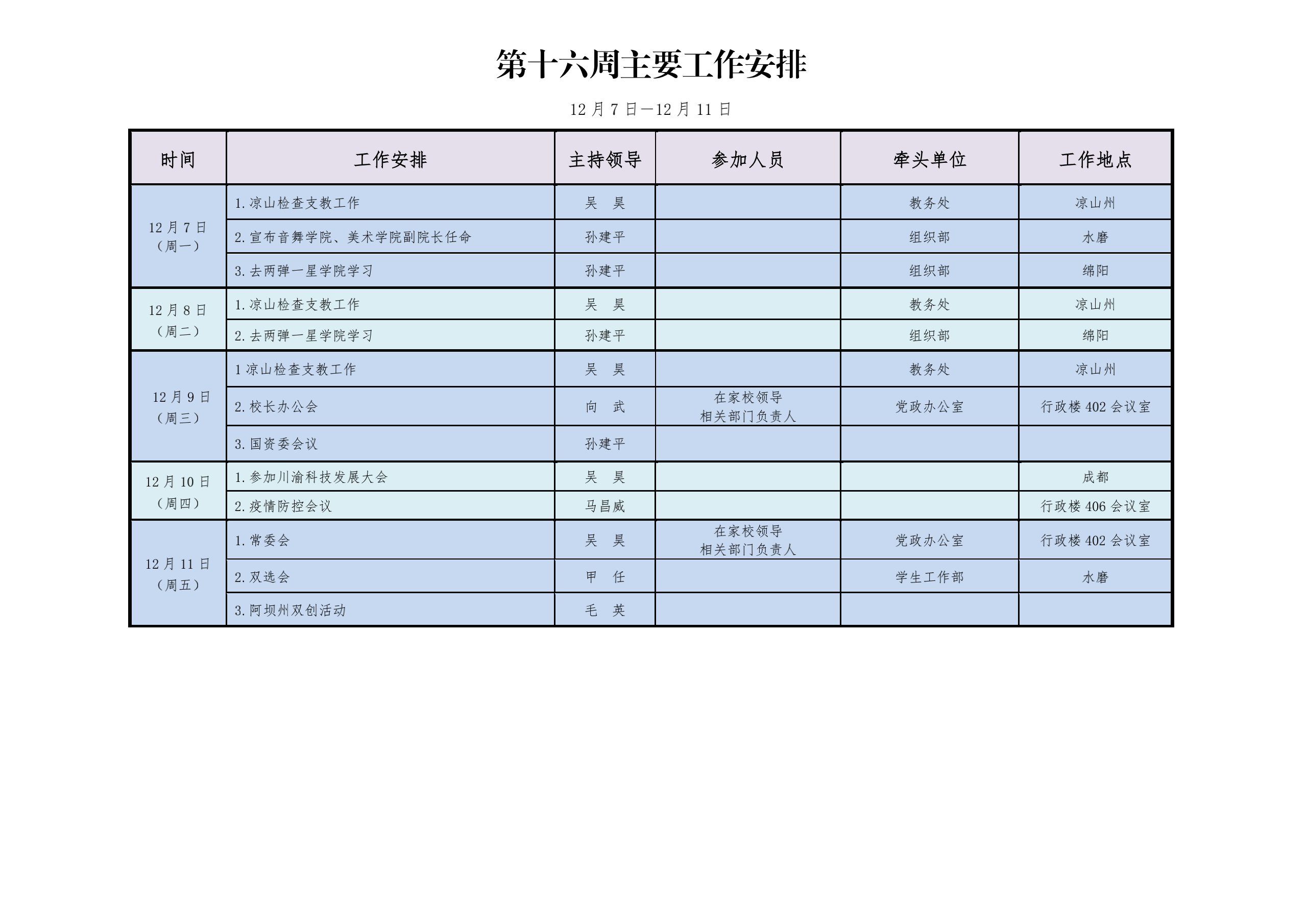 2020-2021学年度第一学期学校领导第十六周主要工作安排