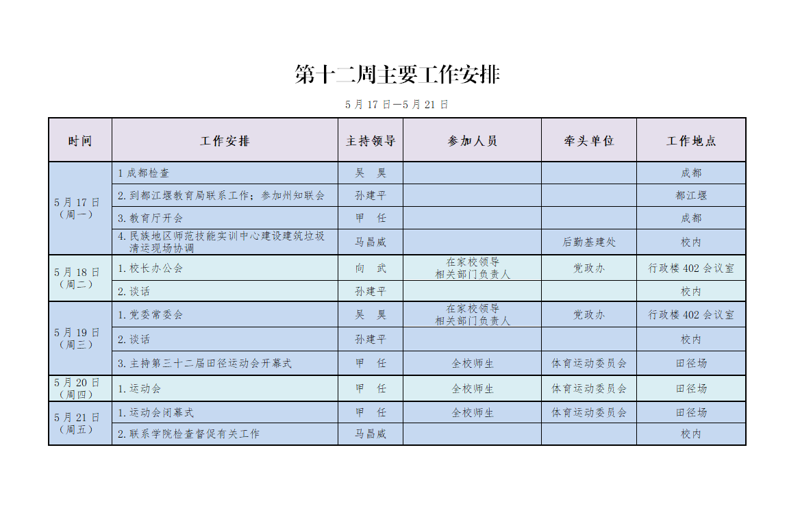 校领导工作安排