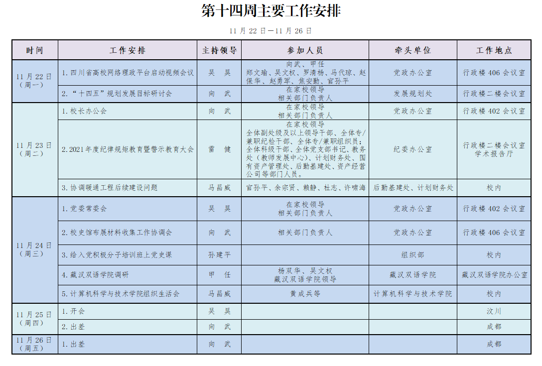 2021-2022学年度第一学期学校领导第十四周主要工作安排