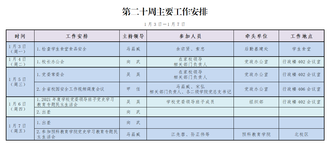 2021-2022学年度第一学期学校领导第十九周主要工作安排
