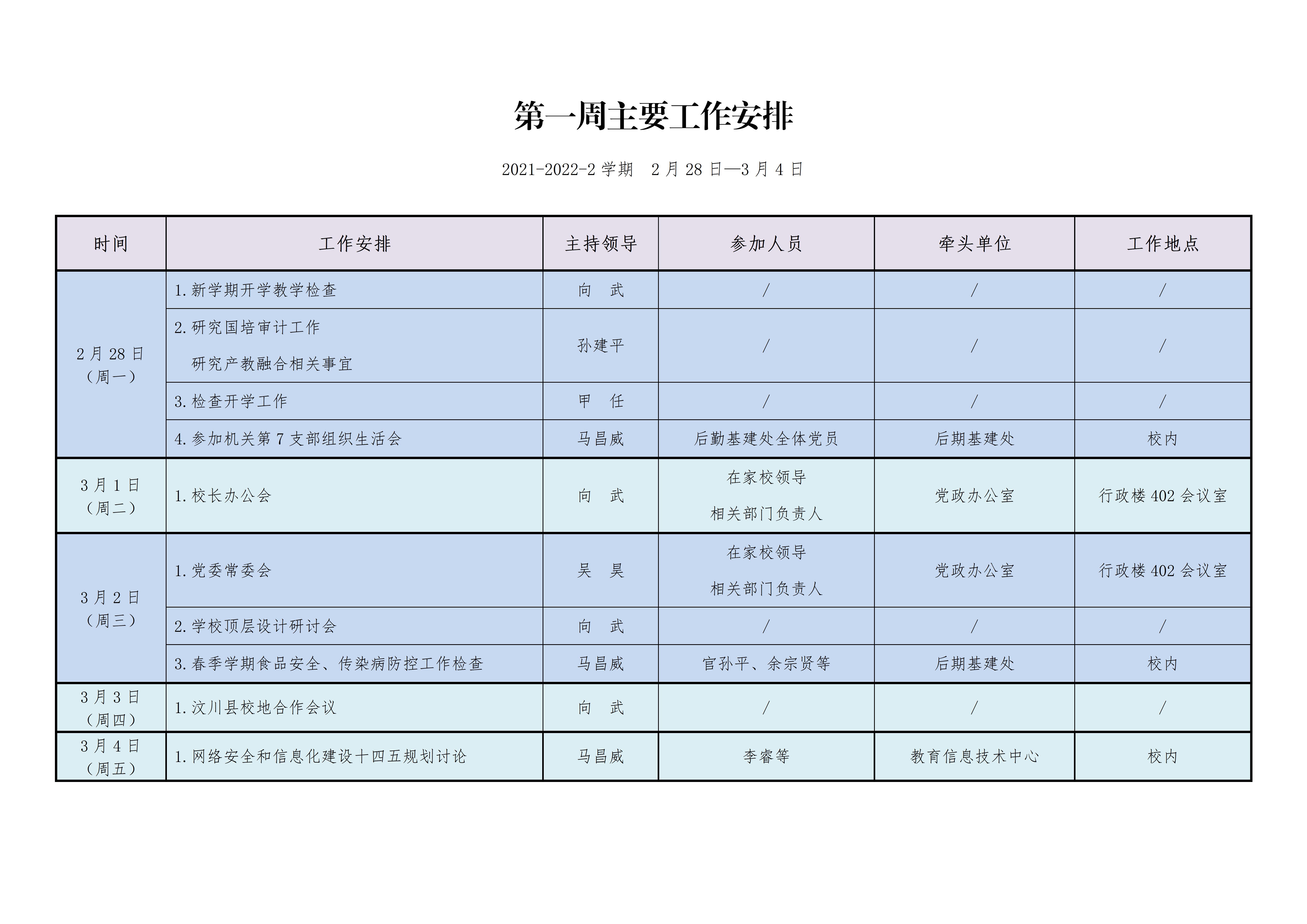 2021-2022学年度第一学期学校领导第二十一周主要工作安排